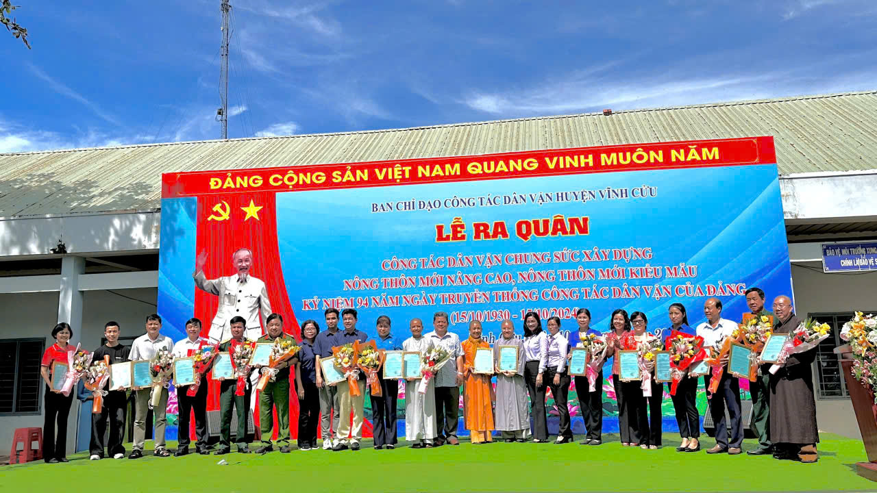 Thực hiện Chương trình số 52-CT/HU, ngày 12/01/2024 của Ban Chấp hành Đảng bộ huyện về CTDV năm 2024 và Kế hoạch số 39-KH/BCĐ, ngày 13/9/2024 của Ban Chỉ đạo CTDV huyện; sáng ngày 10/10/2024, tại Trường TH-THCS Mã Đà, Ban Chỉ đạo CTDV huyện Vĩnh Cửu tổ chức ra quân đợt CTDV tại xã Mã Đà; qua đó, nhằm đẩy mạnh việc thực hiện CTDV của hệ thống chính trị và thực hiện phong trào thi đua “Dân vận khéo” lập thành tích chào mừng kỷ niệm 94 năm Ngày truyền thống CTDV của Đảng (15/10/1930-15/10/2024) và 25 năm “Ngày Dân vận cả nước” (15/10/1999-15/10/2024); đồng thời, hỗ trợ cán bộ và Nhân dân các xã trên địa bàn thực hiện đạt các tiêu chí xây dựng nông thôn mới nâng cao, nông thôn mới kiểu mẫu trong năm 2024.