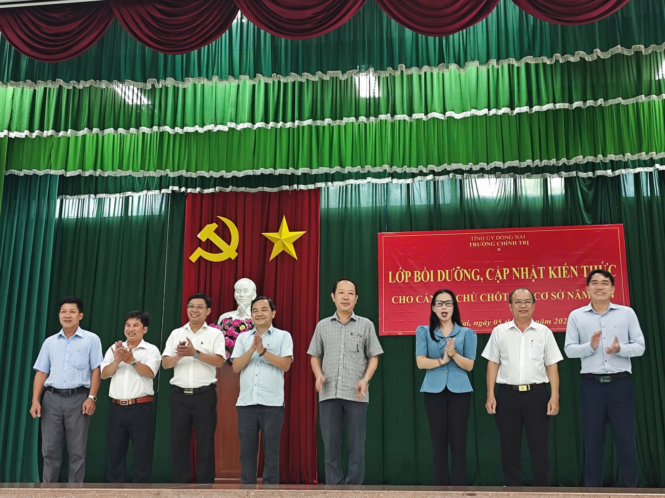 Sáng ngày 05/12/2024, Trường Chính trị tỉnh Đồng Nai tổ chức Lễ khai giảng lớp Bồi dưỡng, cập nhật kiến thức cho cán bộ chủ chốt cấp cơ sở - lớp thứ sáu năm 2024. Đến dự Lễ khai giảng có ThS. Tạ Văn Soát, Phó Hiệu trưởng Trường Chính trị tỉnh; đồng chí Tô Trần Thanh Hải, Phó Trưởng phòng Quản lý biên chế, công chức và viên chức (Sở Nội vụ); đại diện Ban Tổ chức Tỉnh ủy, Ban Tuyên giáo Tỉnh ủy, các khoa, phòng chuyên môn Trường Chính trị Tỉnh cùng 85 học viên là lãnh đạo các cơ quan đơn vị, được quy hoạch Bí thư đảng ủy cấp xã, quy hoạch Chủ tịch UBND cấp xã.