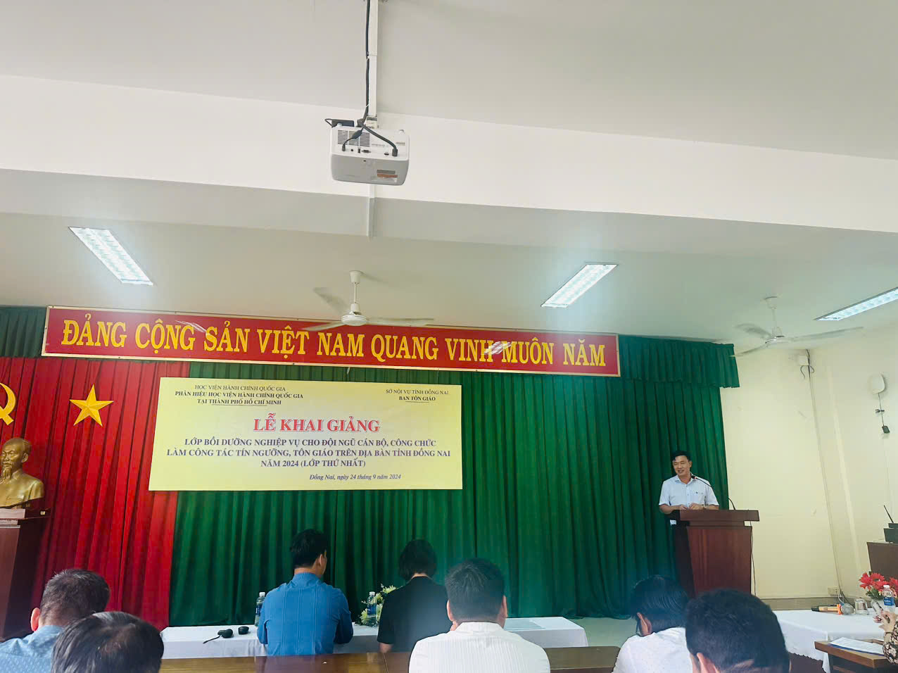 Sáng ngày 24/9/2024, tại Trung tâm Giáo dục thường xuyên tỉnh Đồng Nai, Ban Tôn giáo tỉnh đã tổ chức khai giảng lớp bồi dưỡng chuyên môn nghiệp vụ dành cho đối tượng là CB,CC làm công tác TN,TG trên địa bàn tỉnh Đồng Nai.