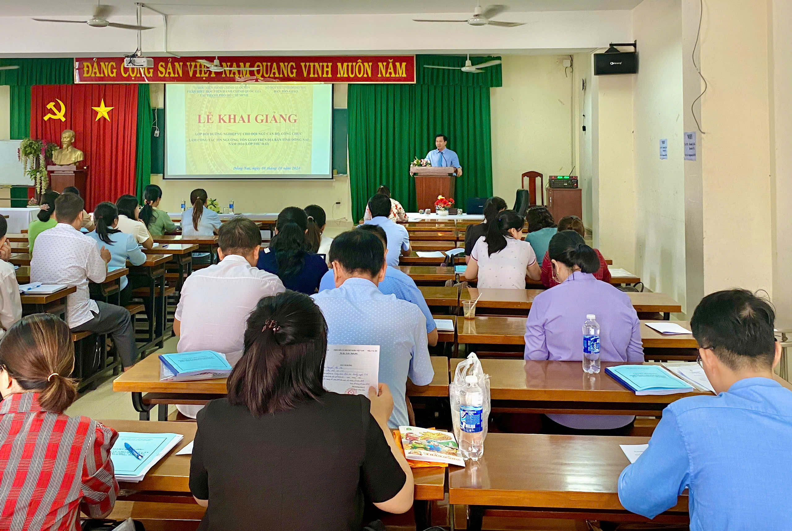 Sáng ngày 08/10/2024 tại Trung tâm Giáo dục thường xuyên tỉnh Đồng Nai, Ban Tôn giáo tỉnh đã tổ chức khai giảng lớp bồi dưỡng chuyên môn nghiệp vụ dành cho đối tượng là CB,CC làm công tác TN,TG trên địa bàn tỉnh Đồng Nai.