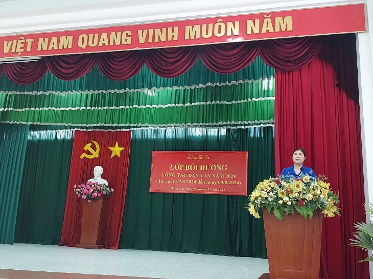 Phát biểu khai mạc lớp bồi dưỡng, đồng chí Phạm Thị Kim Chung - Phó Trưởng ban Thường trực Ban Dân vận Tỉnh ủy đã nhấn mạnh “Dân vận và CTDV là nhiệm vụ có ý nghĩa chiến lược đối với toàn bộ sự nghiệp cách mạng của đất nước, là điều kiện quan trọng bảo đảm sự lãnh đạo của Đảng, thắt chặt mối quan hệ mật thiết giữa Đảng, Nhà nước với Nhân dân, CTDV là trách nhiệm của các cơ quan, tổ chức, cá nhân trong hệ thống chính trị”. Chính vì vậy, trong thời gian qua, dưới sự lãnh đạo, chỉ đạo của các cấp ủy đảng, sự quản lý, điều hành của chính quyền, sự vào cuộc của cả hệ thống chính trị, CTDV trên địa bàn tỉnh đã đạt được nhiều kết quả nổi bật, góp phần quan trọng trong việc thực hiện các nhiệm vụ phát triển kinh tế - xã hội trên địa bàn toàn tỉnh. Ban Dân vận Tỉnh ủy luôn quan tâm, chú trọng công tác đổi mới nội dung, phương thức hoạt động; thường xuyên tập huấn, bồi dưỡng nghiệp vụ, cập nhật kiến thức, kỹ năng cho đội ngũ cán bộ dân vận trên địa bàn tỉnh. Qua đó, góp phần nâng cao chất lượng tham mưu cho cấp ủy, chính quyền địa phương trong triển khai thực hiện hiệu quả các chủ trương, đường lối của Đảng, chính sách, pháp luật của Nhà nước về CTDV; thực hiện hiệu quả Quy chế CTDV của hệ thống chính trị tỉnh, đáp ứng yêu cầu nhiệm vụ CTDV trong giai đoạn mới.
