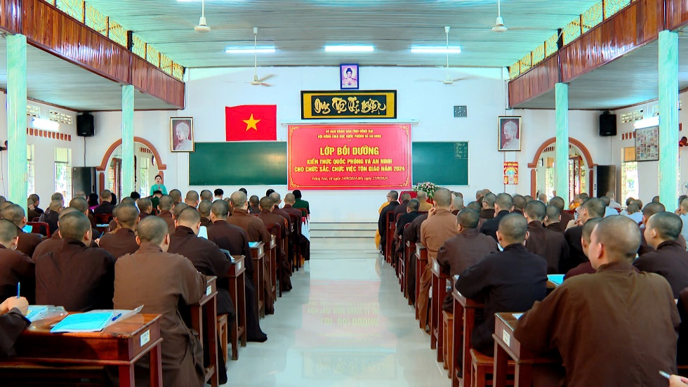 Thực hiện Kế hoạch số 308/KH-UBND, ngày 17/9/2024 của UBND tỉnh về Bồi dưỡng kiến thức QP-AN cho chức sắc, chức việc tôn giáo trên địa bàn tỉnh năm 2024; sáng ngày 24/9/2024, tại Trường Trung cấp Phật học - Cơ sở Ni, Hội đồng Giáo dục QP-AN tỉnh tổ chức khai giảng lớp bồi dưỡng kiến thức QP-AN cho chức sắc, chức việc, nhà tu hành các tôn giáo năm 2024.