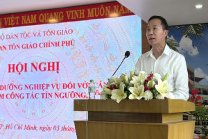 Ngày 03-12-2025, tại thành phố Hồ Chí Minh, Ban Tôn giáo Chính phủ tổ chức khai mạc lớp tập huấn, bồi dưỡng nghiệp vụ dành cho cán bộ, công chức làm công tác tín ngưỡng, tôn giáo thuộc 15 tỉnh, thành phố: Quảng Ngãi, Gia Lai, Đắk Lắk, Khánh Hòa, Lâm Đồng, Đồng Nai, Tây Ninh, Đồng Tháp, Vĩnh Long, Cần Thơ, An Giang, Cà Mau, thành phố Huế, thành phố Đà Nẵng và thành phố Hồ Chí Minh.