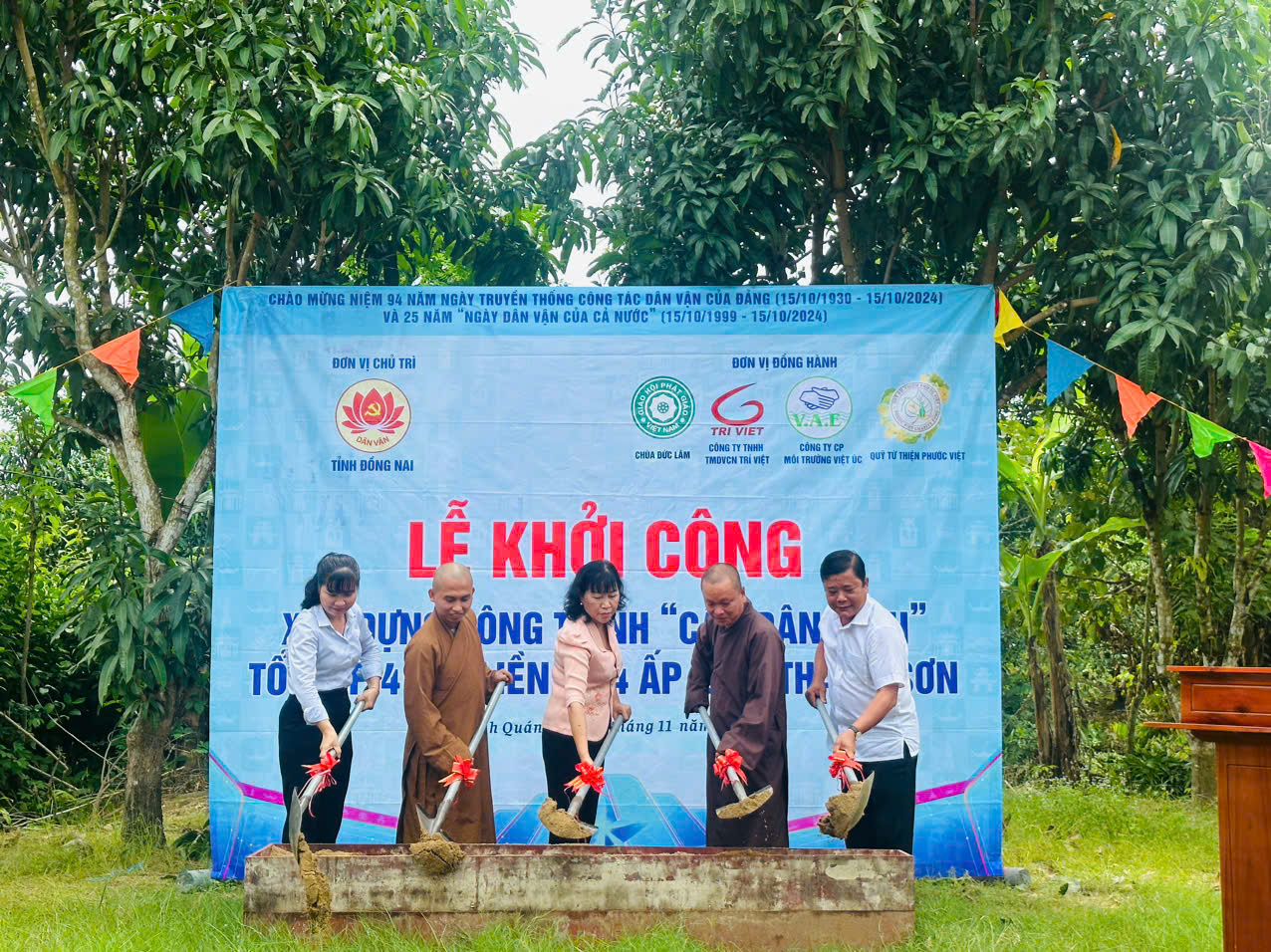 Sáng ngày 26/11/2024, tại xã Thanh Sơn (huyện Định Quán); Ban Dân vận Tỉnh ủy đã phối hợp Ban Từ thiện Xã hội Giáo hội Phật giáo (GHPG) Việt Nam tỉnh Đồng Nai; Ban Trị sự chùa Đức Lâm, huyện Long Thành; Quỹ từ thiện Phước Việt và các đơn vị tài trợ tổ chức Lễ khởi công Công trình “Cầu dân sinh” tại xã Thanh Sơn (huyện Định Quán). Tham dự buổi lễ có các đồng chí: Nguyễn Thị Vẹn, Phó Trưởng ban Ban Dân vận Tỉnh ủy; Trần Hữu Hạnh, Phó Bí thư Thường trực Huyện ủy Định Quán, Chủ tịch HĐND huyện Định Quán; Đại đức Thích Thiện Huy - Ủy viên Ban Trị sự GHPG Việt Nam tỉnh Đồng Nai, Phó ban Từ thiện Xã hội GHPG Việt Nam tỉnh; Đại đức Thích Tâm Minh – Trụ trì chùa Đức Lâm, huyện Long Thành và đại diện Ban Dân vận Huyện ủy Định Quán; đại diện cấp ủy, chính quyền và người dân xã Thanh Sơn (huyện Định Quán).