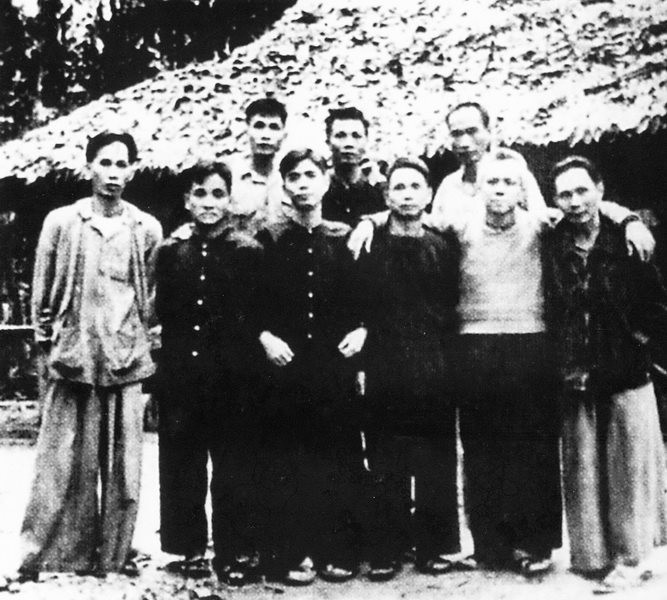 Các đồng chí Ủy viên Trung ương Cục miền Nam [Từ trái sang, hàng trước: Phan Văn Đáng (Hai Văn) - Phó Bí thư Trung ương Cục; Trương Chí Cương - Khu ủy Khu 5; Nguyễn Văn Linh - Bí thư Trung ương Cục; Trần Nam Trung - Thường vụ Trung ương Cục; Phạm Thái Bường (Ba Bường) - Ủy viên Trung ương Cục; Võ Chí Công - Phó Bí thư Trung ương Cục. Hàng sau: Võ Văn Kiệt, Trần Văn Quang và Phạm Văn Xô (Hai Xô) - Ủy viên Trung ương Cục] (Ảnh tư liệu)