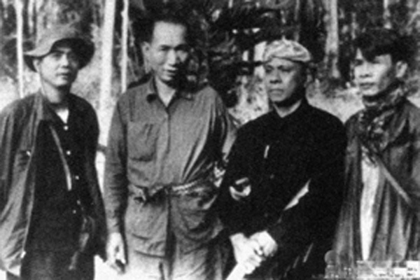 Từ trái sang: Đồng chí Nguyễn Văn Linh (Mười Cúc), Phạm Văn Xô (Hai Xô), Phạm Thái Bường (Ba Bường), Võ Văn Kiệt (Sáu Dân) tại căn cứ Trung ương Cục miền Nam (Ảnh tư liệu)