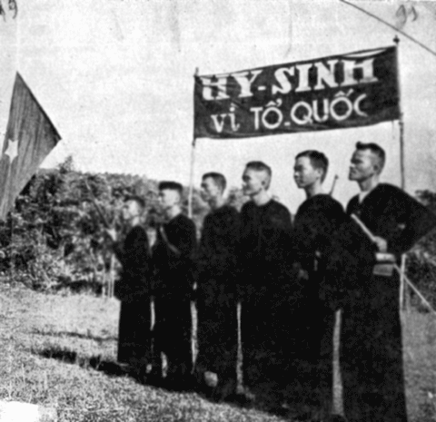 Tháng 3/1945, đội du kích Ba Tơ tuyên thệ tại căn cứ địa (Ảnh tư liệu, Bảo tàng Lịch sử quốc gia)