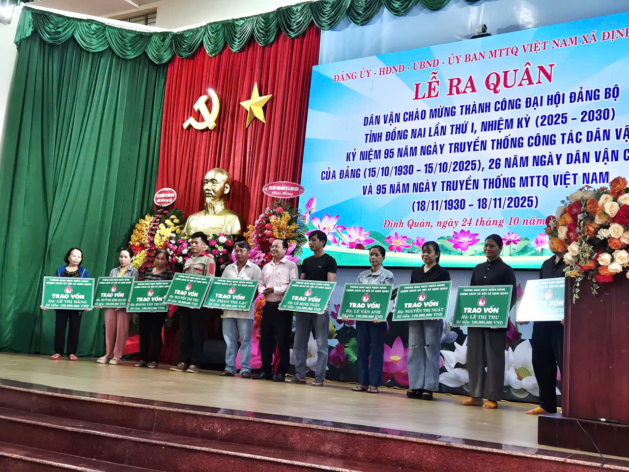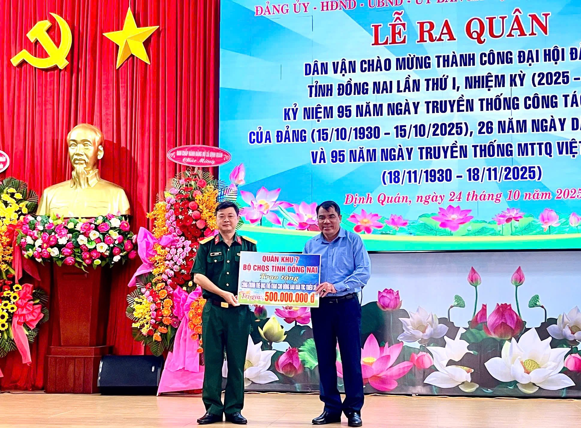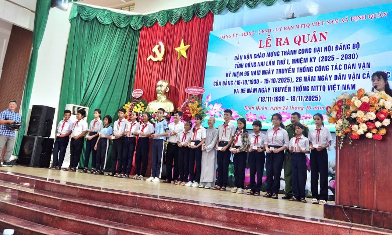 Ngày 24-10, tại xã Định Quán đã diễn ra Lễ ra quân làm công tác dân vận gắn với các hoạt động chăm lo an sinh xã hội trên địa bàn. Chương trình được tổ chức nhằm chào mừng thành công Đại hội Đảng bộ tỉnh Đồng Nai lần thứ I, nhiệm kỳ 2025 - 2030; kỷ niệm 95 năm Ngày truyền thống công tác dân vận của Đảng (15/10/1930 - 15/10/2025) và 95 năm Ngày truyền thống Mặt trận Tổ quốc Việt Nam (18/11/1930 - 18/11/2025).