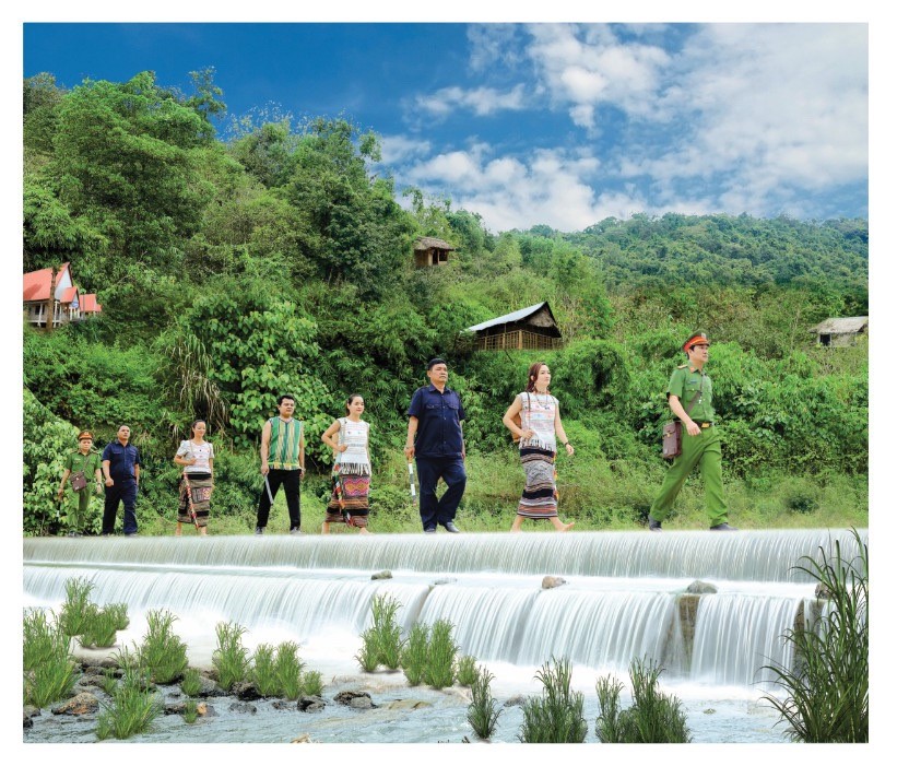 Lực lượng Công an xã đi tuần tra giữ gìn ANTT tại cơ sở
