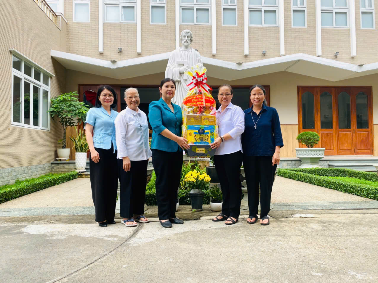 Đồng chí Phạm Thị Kim Chung - Phó Trưởng ban thường trực Ban Dân vận Tỉnh ủy tặng quà chúc mừng Hội dòng Đa Minh Tam Hiệp