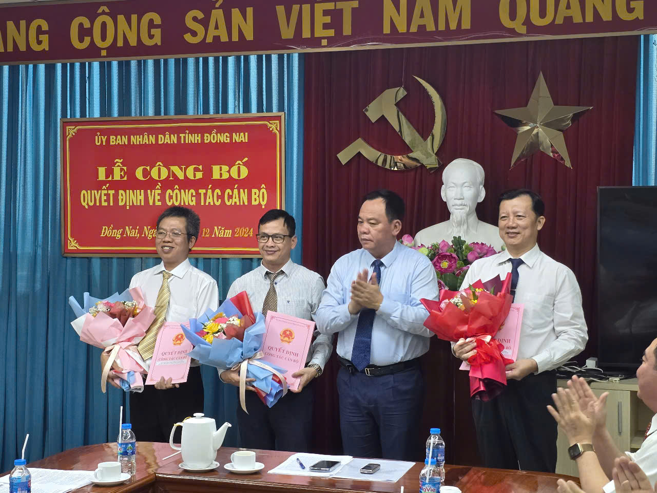 Tại buổi lễ, lãnh đạo Sở Nội vụ đã công bố quyết định của UBND tỉnh về việc thành lập Trung tâm Phát triển quỹ đất tỉnh Đồng Nai trực thuộc UBND tỉnh trên cơ sở hợp nhất Ban Quản lý Dự án bồi thường, giải phóng mặt bằng và hỗ trợ tái định cư tỉnh và Trung tâm phát triển Quỹ đất tỉnh thuộc Sở Tài nguyên và Môi trường; đồng thời, công bố các quyết định về công tác cán bộ gồm điều động, bổ nhiệm đồng chí Mai Phong Phú - Phó Giám đốc phụ trách Ban Quản lý dự án bồi thường, giải phóng mặt bằng và hỗ trợ tái định cư tỉnh giữ chức Giám đốc Trung tâm Phát triển quỹ đất tỉnh; điều động, bổ nhiệm đồng chí Lê Thanh Điền - Phó Giám đốc Ban Quản lý Dự án bồi thường, giải phóng mặt bằng và hỗ trợ tái định cư tỉnh giữ chức Phó Giám đốc Trung tâm Phát triển quỹ đất tỉnh; điều động, bổ nhiệm đồng chí Chu Tiến Dũng - Giám đốc Trung tâm phát triển Quỹ đất tỉnh thuộc Sở Tài nguyên và Môi trường giữ chức Phó Giám đốc Trung tâm Phát triển quỹ đất tỉnh. Các quyết định có hiệu lực kể từ ngày 01/01/2025.