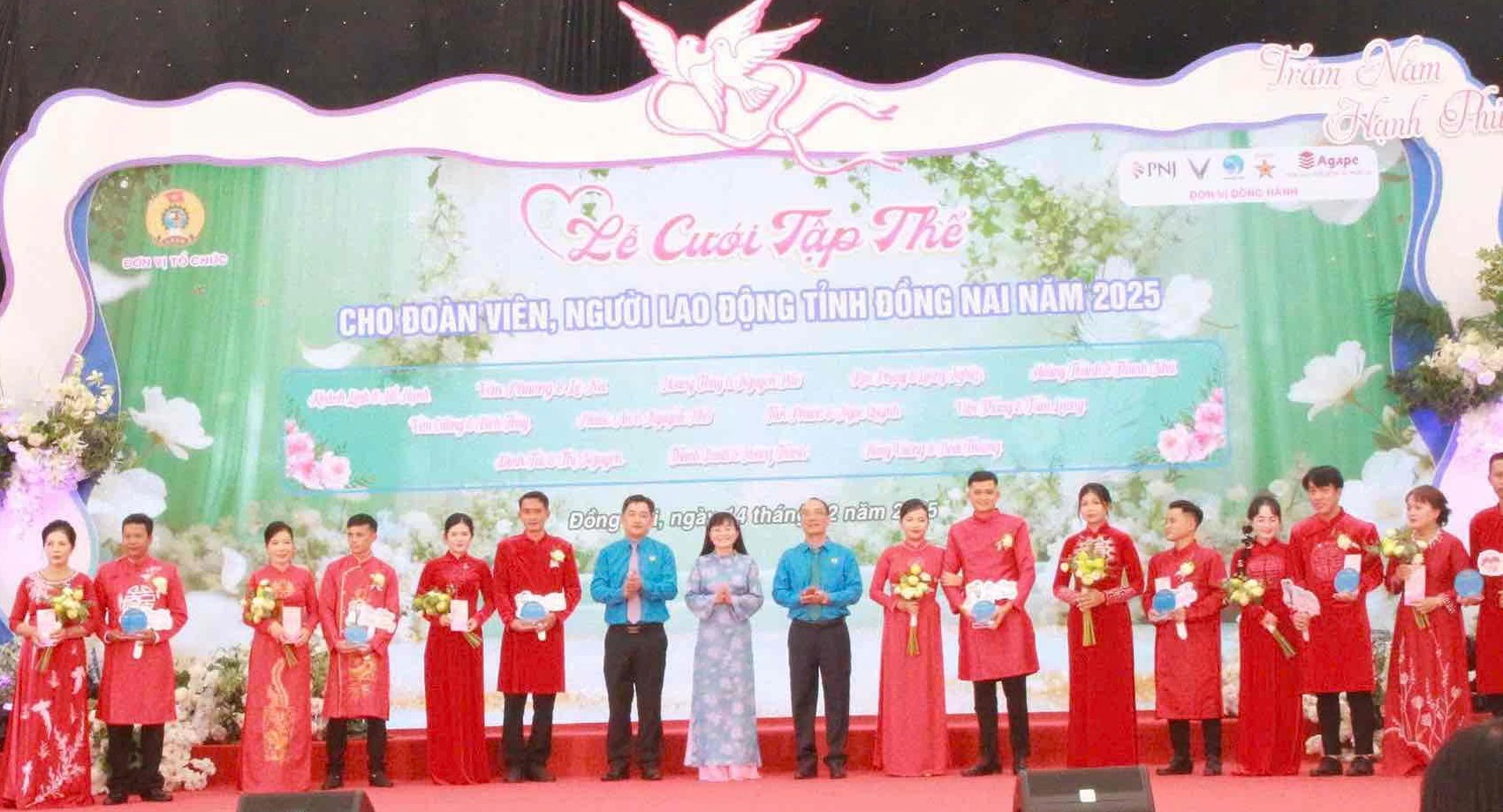 Theo LĐLĐ tỉnh Đồng Nai, lễ cưới tập thể năm 2025 là lần thứ hai chương trình được tổ chức. Qua hai lần triển khai, đã có 21 cặp đôi công nhân, người lao động trên địa bàn tỉnh được tổ chức lễ cưới trang trọng, ấm áp. Hoạt động không chỉ góp phần vun đắp hạnh phúc gia đình công nhân mà còn khẳng định vai trò, trách nhiệm và sự đồng hành của tổ chức Công đoàn đối với đoàn viên, người lao động trong tỉnh.