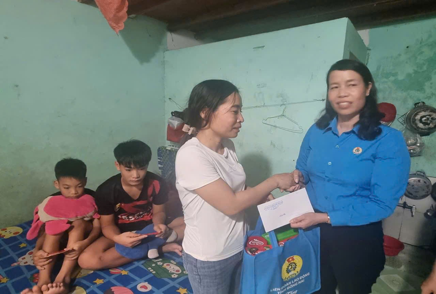 Đồng chí Trần Thị Hồng Thảo - HUV, Chủ tịch LĐLĐ huyện đã đến thăm, động viên các đoàn viên, người lao động có hoàn cảnh khó khăn hiện đang ở tại các khu nhà trọ trên địa bàn huyện; đồng thời, LĐLĐ huyện đã trao 800 suất quà, mỗi suất quà từ 500 ngàn đồng đến 2,0 triệu đồng cho đoàn viên bị tai nạn, mắc bệnh hiểm nghèo. Những món quà ý nghĩa góp phần động viên về vật chất và tinh thần đối với các đoàn viên, người lao động; qua đó, giúp đoàn viên, người lao động vơi bớt khó khăn, vượt lên hoàn cảnh để yên tâm công tác, ổn định cuộc sống.