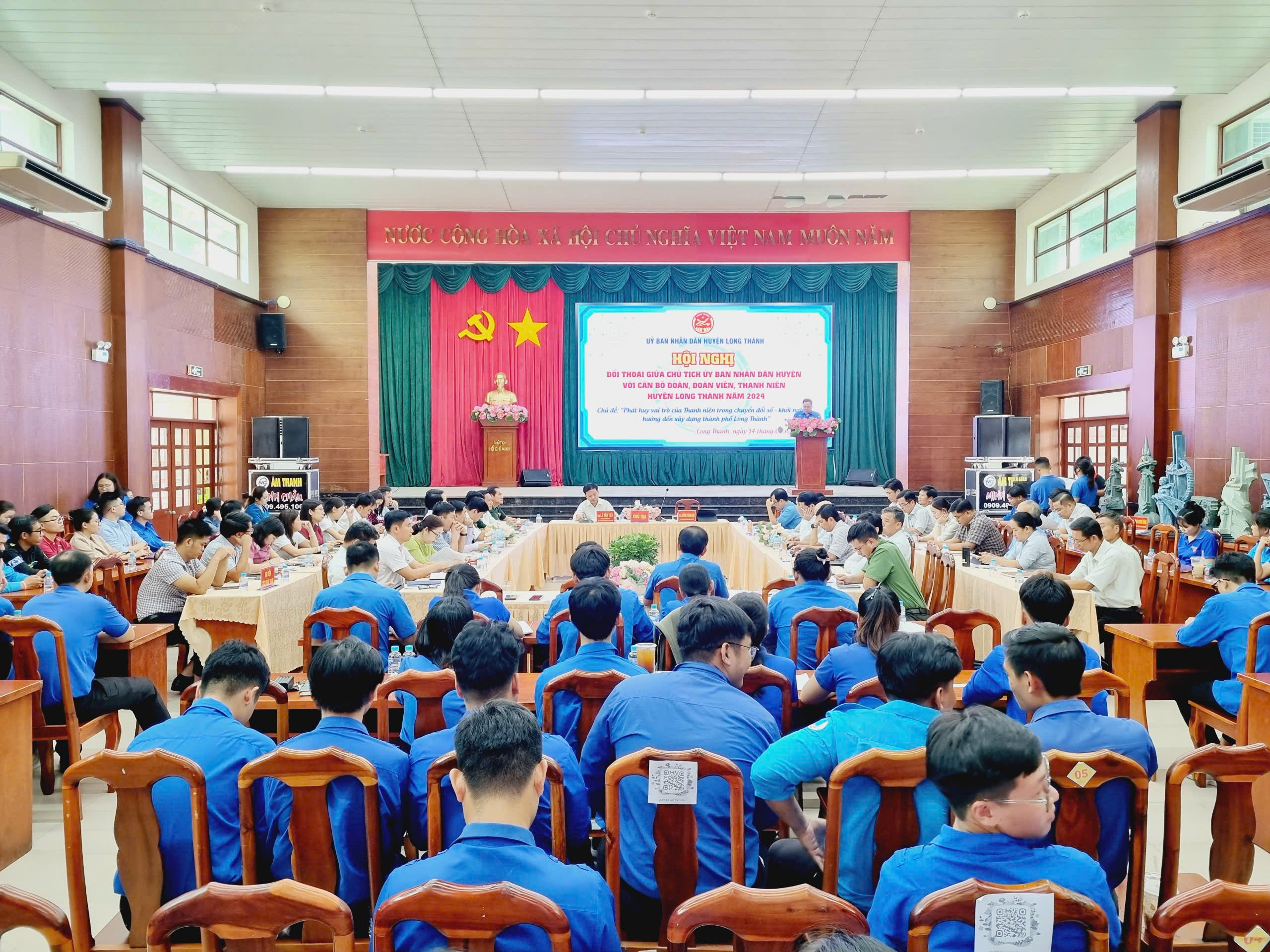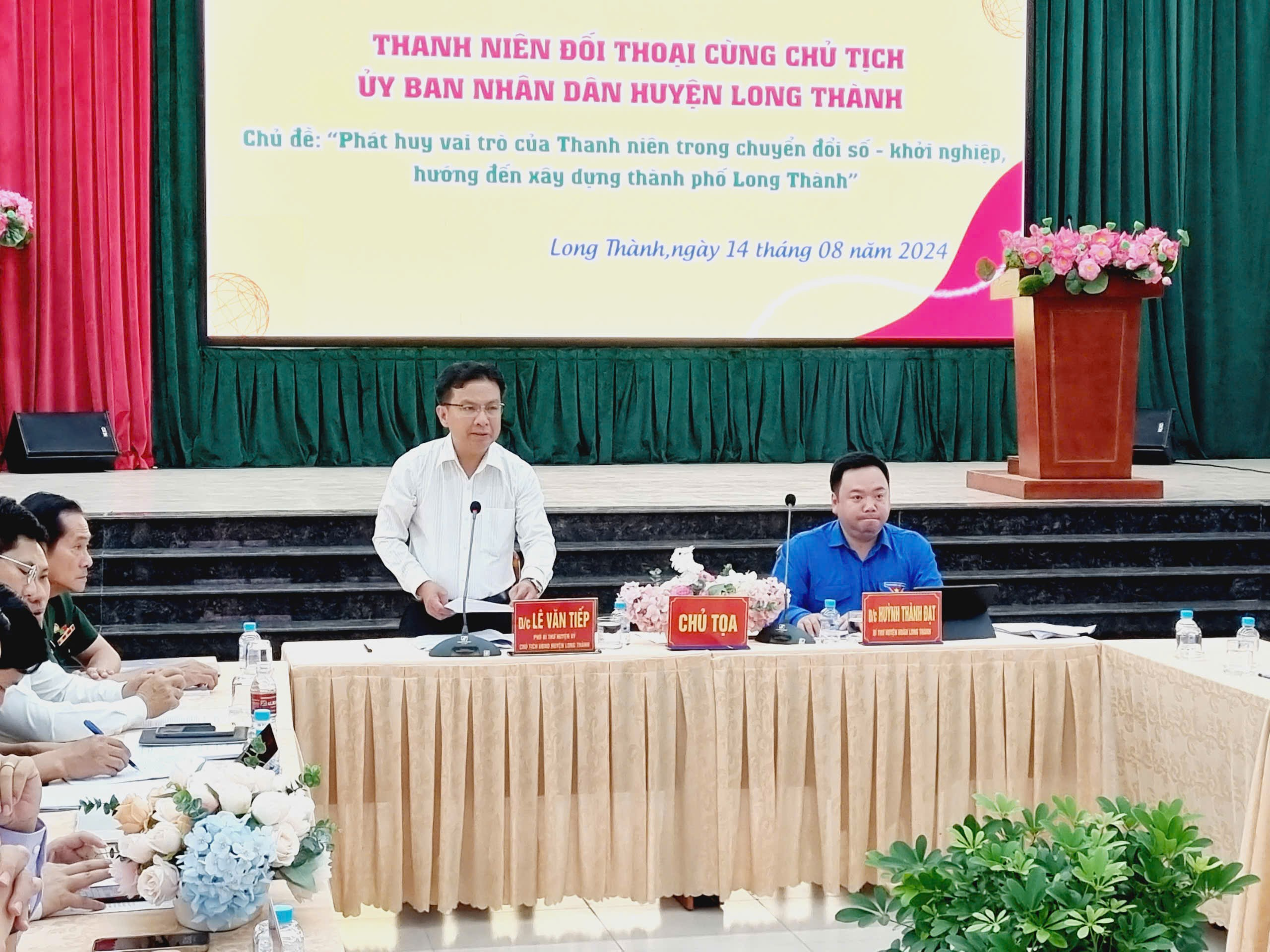 Theo đó, vào chiều ngày 15/8, tại hội trường UBND huyện, căn cứ chương trình công tác năm 2024, đồng chí Lê Văn Tiếp, Phó Bí thư huyện ủy, Chủ tịch UBND huyện đã chủ trì hội nghị đối thoại giữa Chủ tịch UBND huyện với Cán bộ đoàn, đoàn viên, thanh niên năm 2024 với chủ đề “phát huy vai trò của thành niên trong chuyển đổi số - khởi nghiệp hướng đến xây dựng thành phố Long Thành”. Tham dự và đồng chủ trì hội nghị còn có đồng chí Huỳnh Thành Đạt, HUV, Bí thư huyện đoàn, cùng lãnh đạo các cơ quan, ban ngành đoàn thể huyện, Bí thư, Chủ tịch 14 xã, thị trấn và hơn 100 đồng chí là cán bộ đoàn, đoàn viên, thanh niên trên địa bàn huyện.