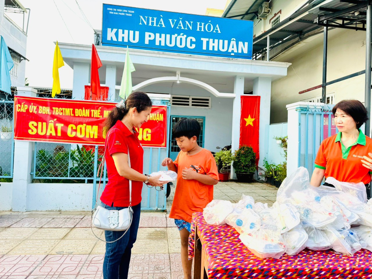 Trong thời gian qua, với tinh thần tương thân tương ái, thời gian qua địa bàn Thị trấn Long Thành đã xuất hiện rất nhiều mô hình gần gũi với người dân có hoàn cảnh khó khăn, đó là mô hình hỗ trợ suất ăn “0 đồng” từ các “ Bếp ăn 0 đồng” do các Chi hội phụ nữ ở các khu phố cùng thực hiện. Với ý nghĩa thiết thực đó, sáng ngày 17-06, Chi hội Phụ nữ Khu Văn Hải và Chi hội Phụ nữ Khu Phước Thuận đã tổ chức trao 450 suất ăn và 200 chai nước suối trị giá 11.750.000 đồng.