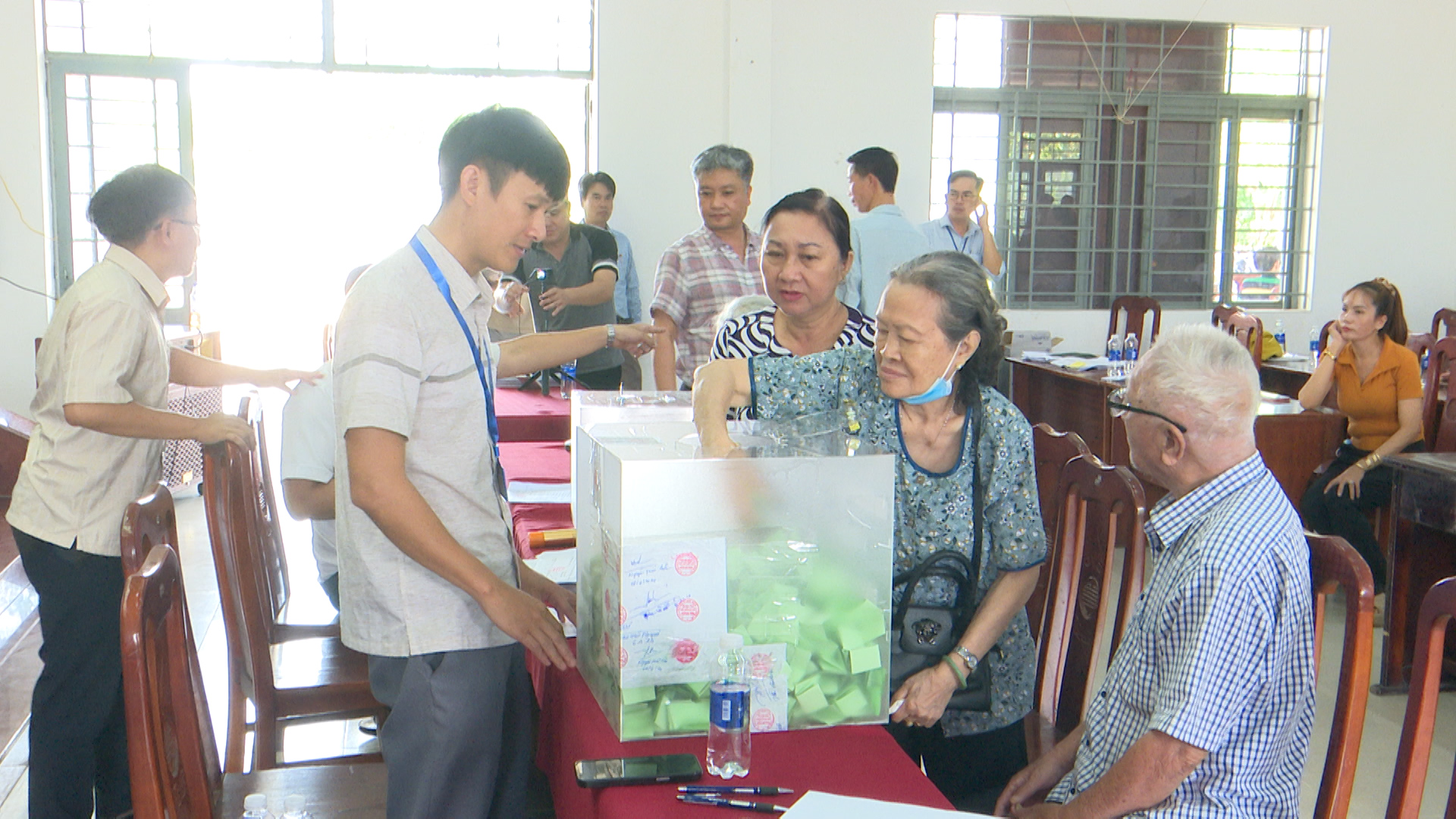 Lãnh đạo các ban ngành và người dân kiểm tra thùng phiếu