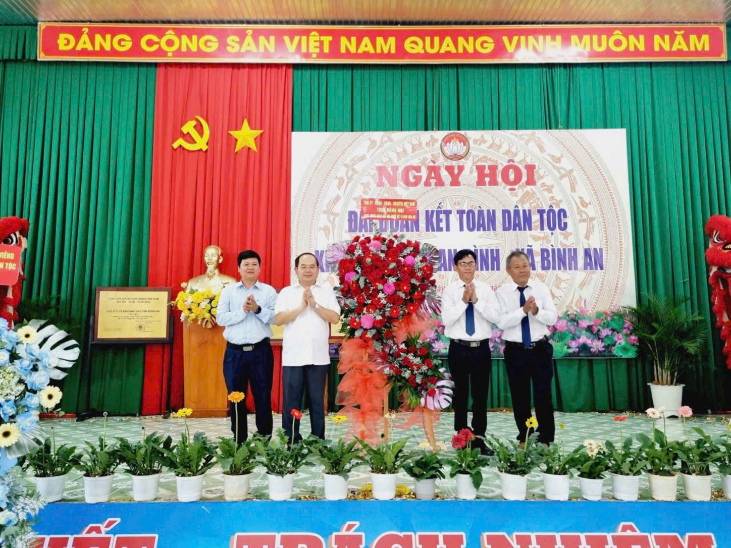 Lãnh đạo tỉnh tặng hoa chúc mừng khu dân cư tiêu biểu.
