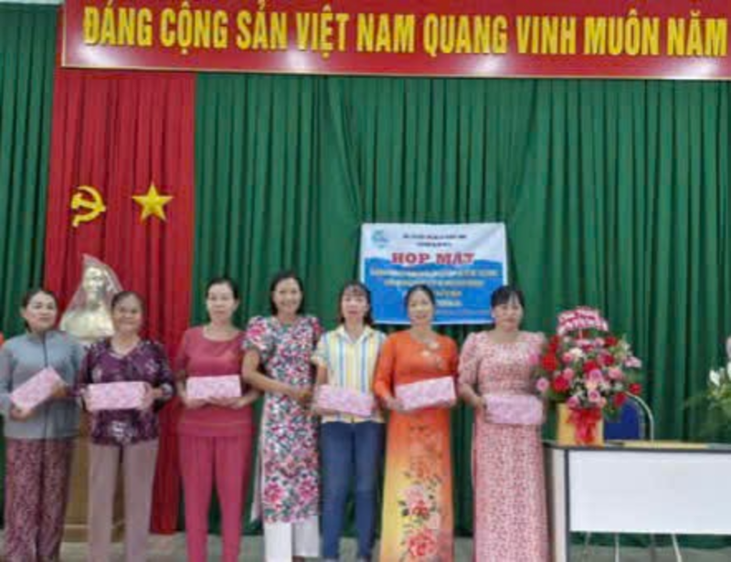 Chị Dương Thị Cúc - Chủ tịch Hội Liên hiệp Phụ nữ (LHPN) xã Phước Bình tặng quà cho hội viên có hoàn cảnh khó khăn