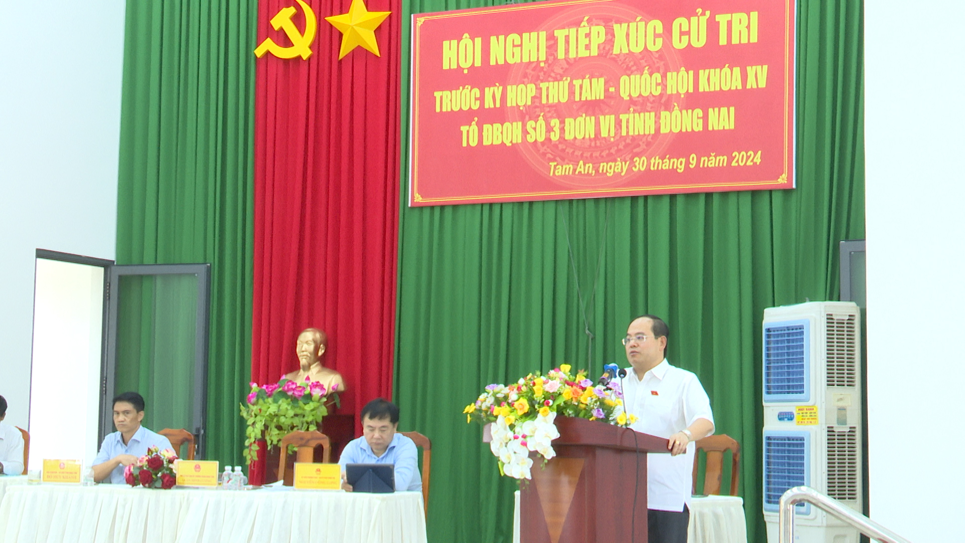 Sáng 30/9, Đoàn Đại biểu Quốc Hội tỉnh Đồng Nai, đơn vị số 3 gồm các ông, Quản Minh Cường – Phó Bí thư Tỉnh ủy, Trưởng đoàn Đại biểu Quốc Hội tỉnh, Nguyễn Công Long - Ủy viên Thường trực Ủy ban Tư Pháp Quốc Hội và Đỗ Huy Khánh – Phó Giám đốc Sở Giáo dục đào tạo đã có buổi tiếp xúc với hơn 100 cử tri xã Tam An, huyện Long Thành.