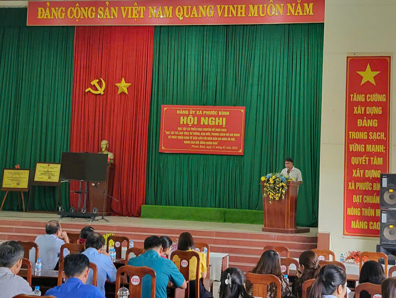 Sáng ngày 21/2/2025, tại Trung tâm VHHTCĐ xã, Đảng ủy xã Phước Bình tổ chức hội nghị học tập, triển khai chuyên đề 2025: "Học tập và làm theo tư tưởng, đạo đức, phong cách Hồ Chí Minh về phát triển kinh tế gắn liền với đảm bảo an sinh xã hội, nâng cao đời sống Nhân dân". Đồng chí Lục Kim Cường- Bí thư Đảng ủy xã chủ trì hội nghị. Tham dự hội nghị có các đồng chí trong BTV, BCH Đảng ủy xã khóa VI, nhiệm kỳ 2020-2025; các đồng chí nguyên lãnh đạo qua các thời kỳ; các đồng chí Trưởng, phó các ban, ngành đoàn thể xã và toàn thể đảng viên trong đảng bộ xã.
