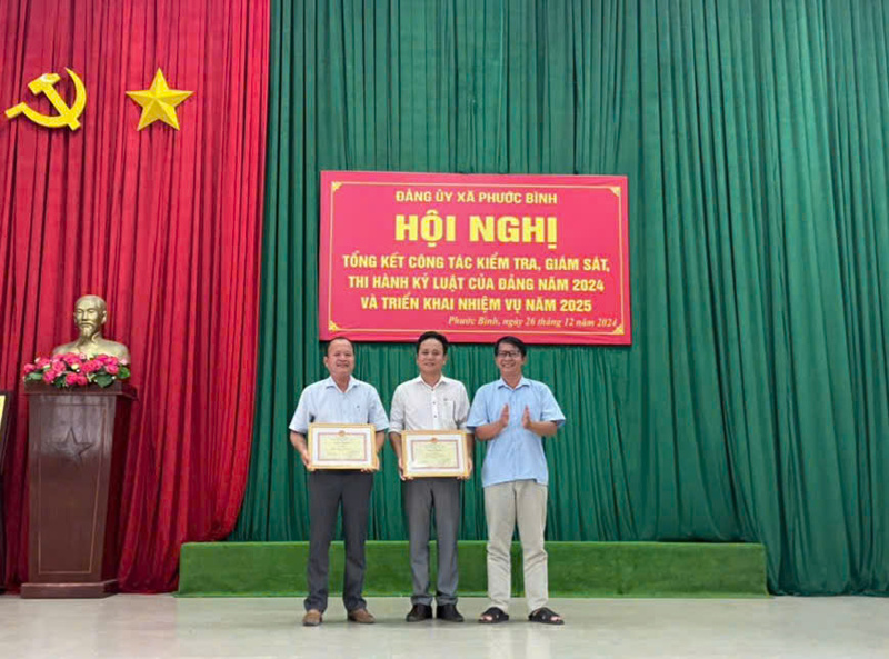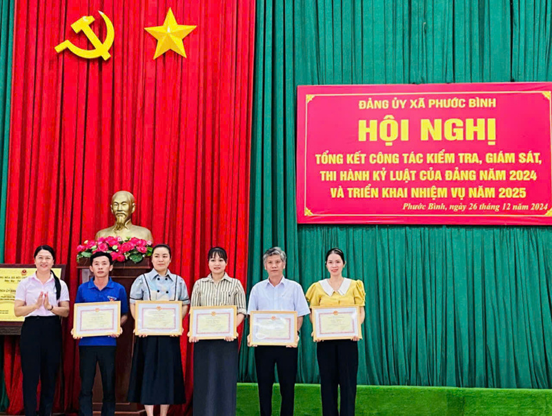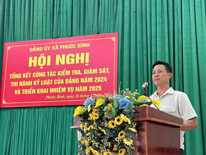 Chiều ngày 26/12/2024, tại trung tâm Văn hoá học tập cộng đồng xã, Đảng uỷ xã Phước Bình tổ chức Hội nghị tổng kết công tác kiểm tra, giám sát, thi hành kỷ luật năm 2024 và triển khai nhiệm vụ năm 2025. Đồng chí Hồ Hồng Hoan- Huyện uỷ viên- Phó Chủ nhiệm UBKT Huyện uỷ Long Thành dự và chỉ đạo Hội nghị. Tham dự còn có đồng chí Lục Kim Cường – Bí thư Đảng uỷ xã, đồng chí Hà Thị Ngọc Lụa- Thường trực Đảng uỷ - Chủ nhiệm UBKT Đảng uỷ xã, các đồng chí trong Ban Chấp hành Đảng uỷ xã và các đồng chí là Bí thư, phó bí thư, cán bộ phụ trách công tác kiểm tra giám sát các chị bộ trực thuộc Đảng uỷ xã.