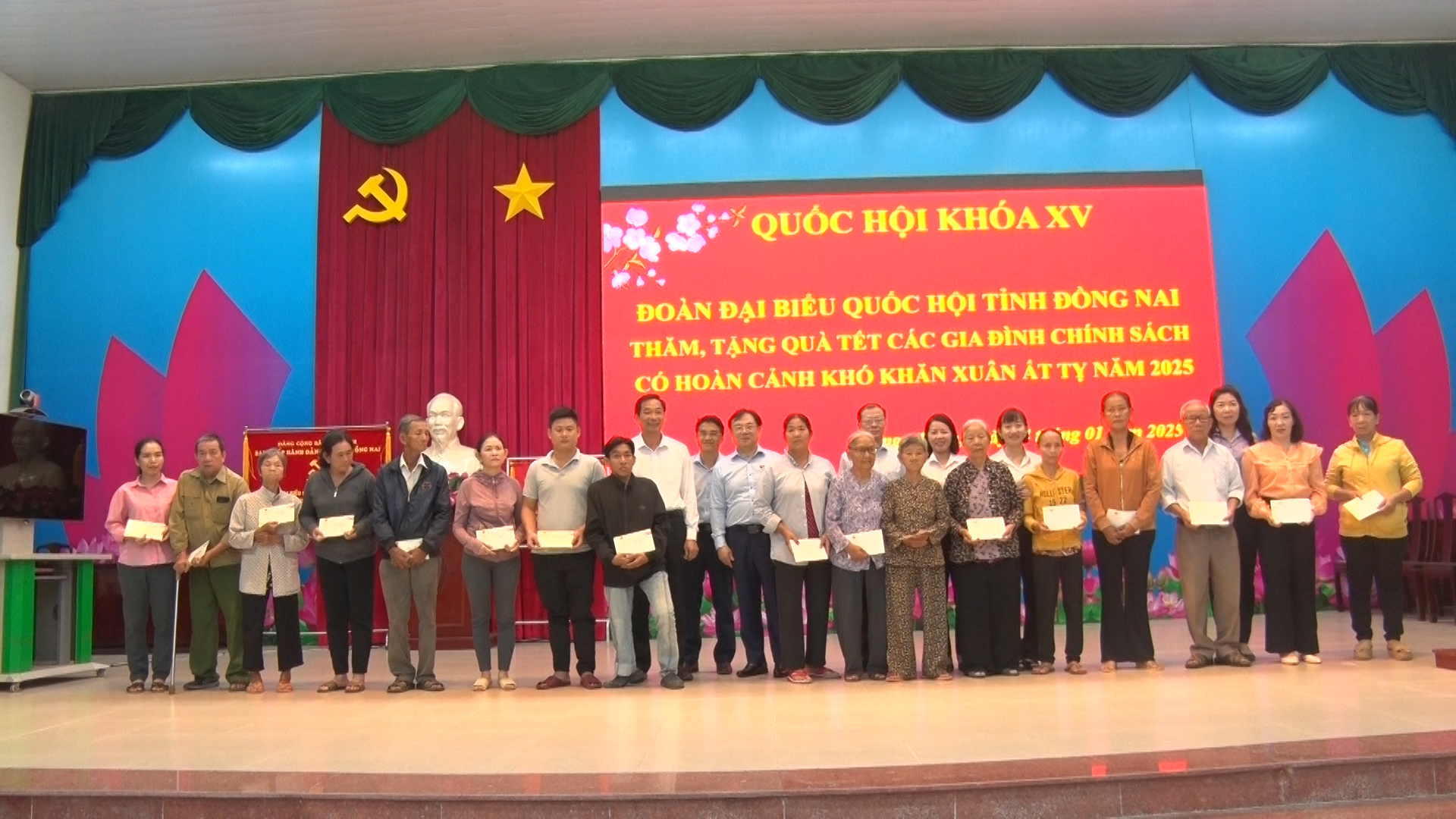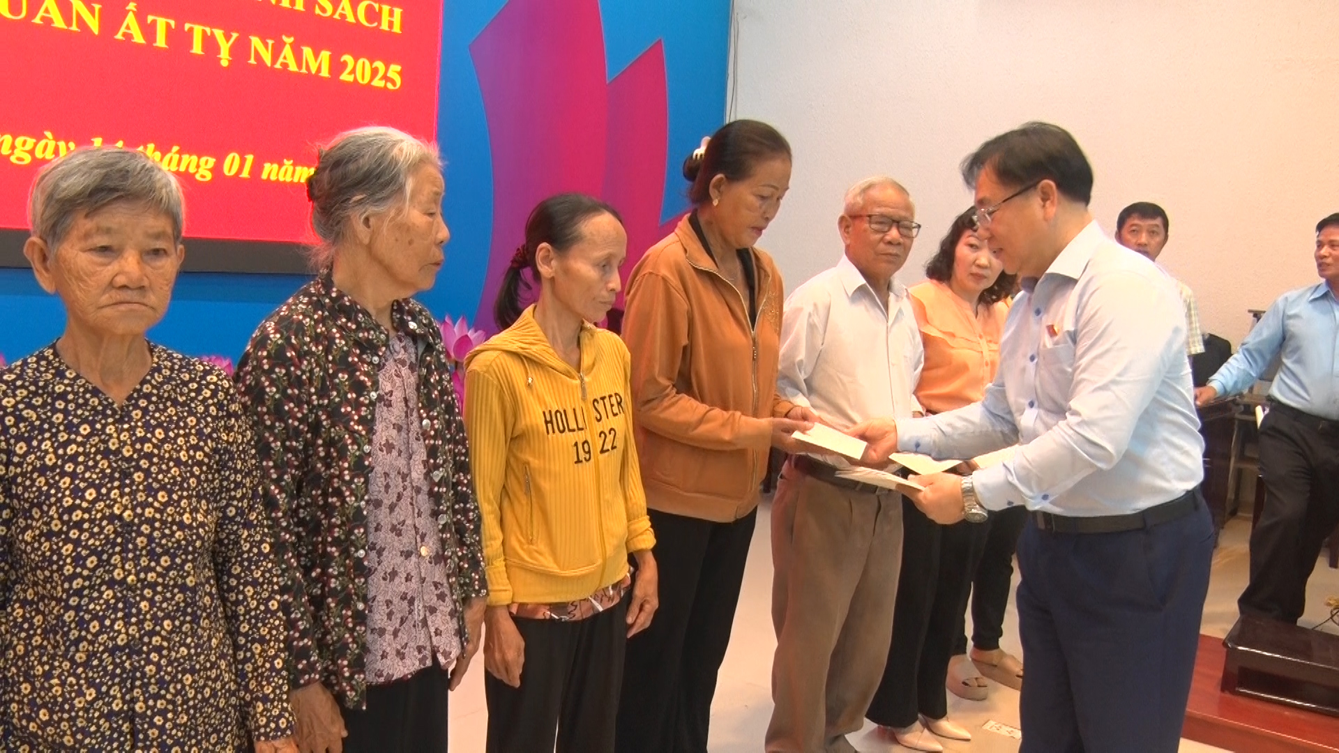Tại đây, Đoàn đại biểu Quốc hội tỉnh đã tặng 20 phần, mỗi phần trị giá 1 triệu đồng cho các gia đình chính sách, người dân có hoàn cảnh khó khăn. Trong đó, 10 phần quà trích từ nguồn ngân sách của Đoàn ĐBQH tỉnh; 10 phần do đồng chí Nguyễn Công Long trao tặng. Tại buổi trao quà, đồng chí Nguyễn Công Long mong rằng những phần quà nhỏ này sẽ góp phần động viên tinh thần để bà con vui xuân đón tết an lành hạnh phúc. Đồng thời đề nghị các cấp chính quyền địa phương trong thời gian tới tiếp tục quan tâm chăm lo đời sống cho nhân dân, nhất là những gia đình chính sách, hộ nghèo có hoàn cảnh khó khăn; góp phần đảm bảo an sinh xã hội tại địa phương.