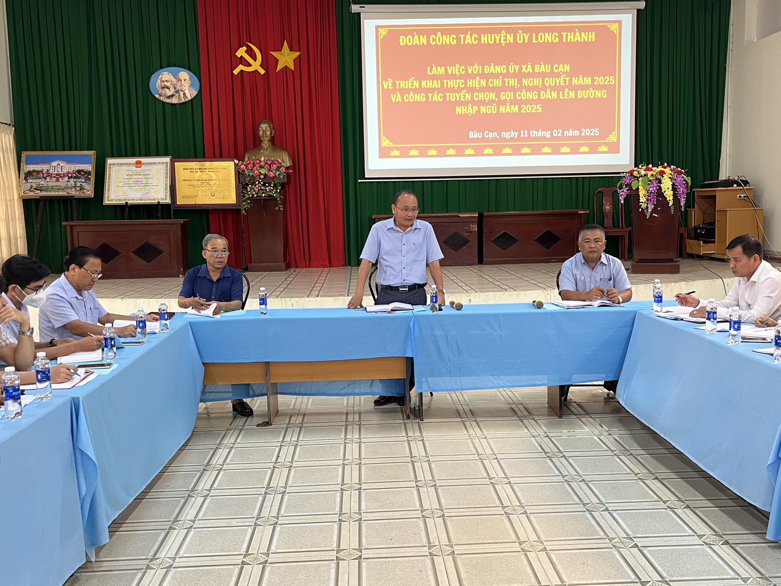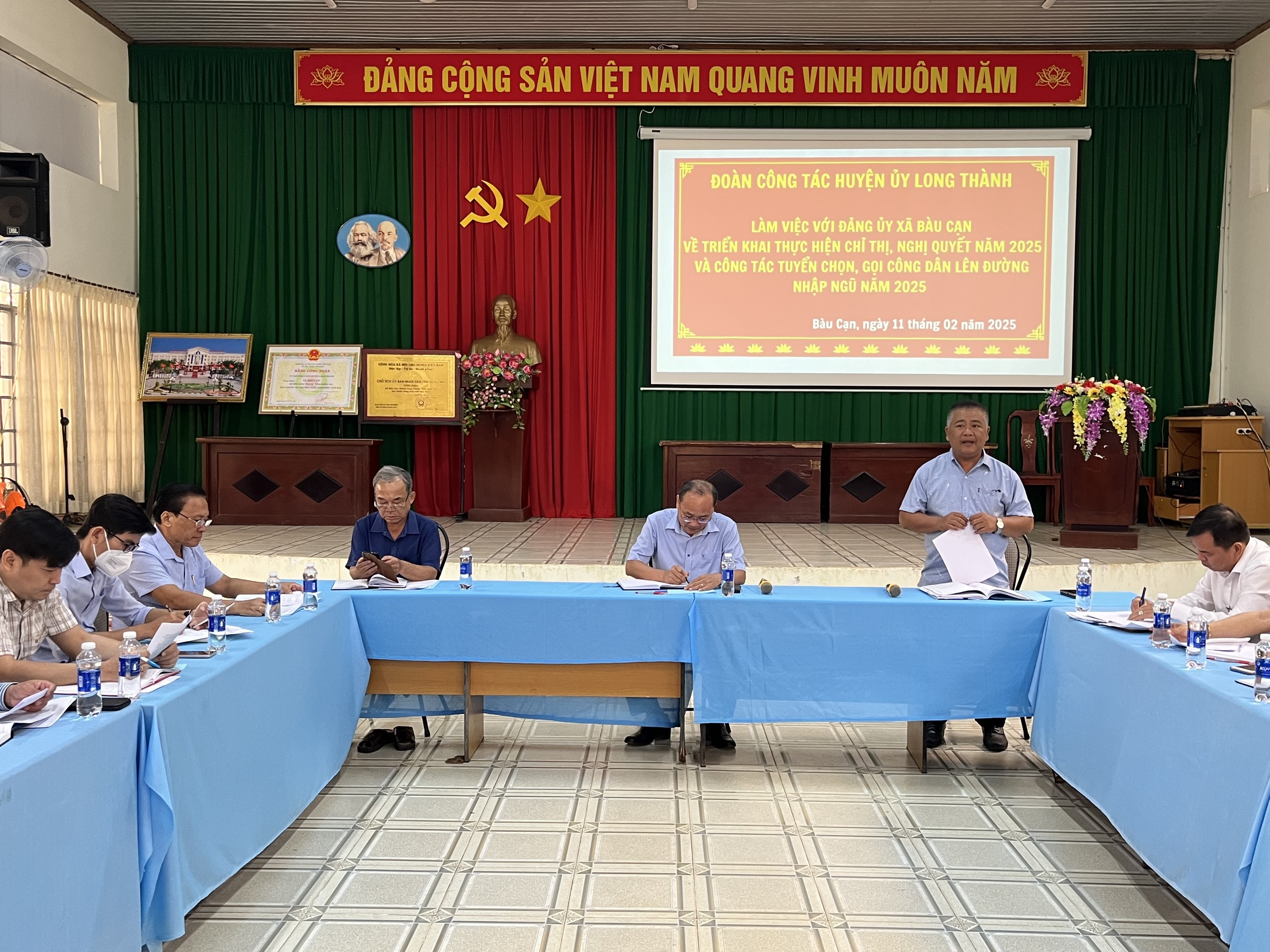Sáng ngày 11/02/2025, Đoàn kiểm tra Huyện ủy kiểm tra tình hình trước, trong, sau Tết Ất Tỵ 2025 làm việc tại Đảng ủy xã Bàu Cạn, chủ trì hội nghị đồng chí Huỳnh Minh Dũng - Phó Bí thư Thường trực Huyện ủy - Chủ tịch HĐND huyện. Tham gia đoàn công tác còn có các đồng chí Ủy viên Ban Thường vụ Huyện ủy, Ủy viên Ban Chấp hành Đảng bộ huyện được phân công phụ trách địa bàn và đại diện lãnh đạo các ban Đảng Huyện ủy.
