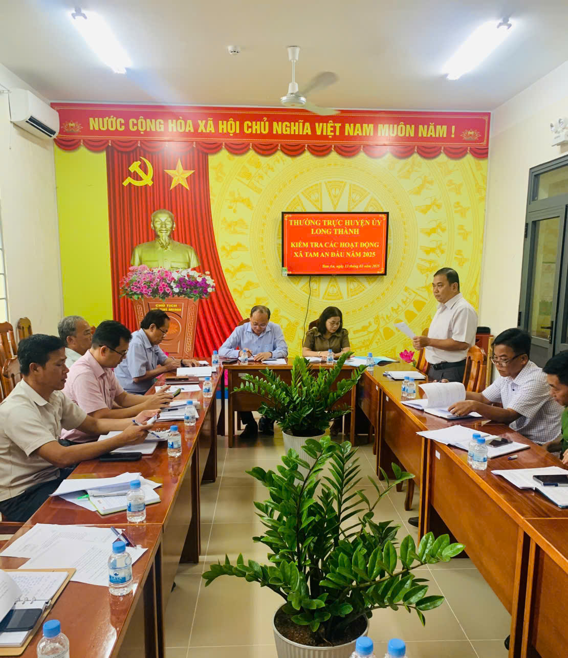 Kết luận Hội nghị, đồng chí Huỳnh Minh Dũng - Phó Bí thư Thường trực Huyện ủy - Chủ tịch HĐND huyện yêu cầu Đảng bộ xã Tam An xây dựng kế hoạch tạo nguồn lực lượng trung kiên, tập trung lãnh đạo thực hiện công tác kết nạp Đảng viên mới năm 2025 đạt chỉ tiêu huyện giao; nâng cao chất lượng sinh hoạt đảng gắn với công tác thực hiện sử dụng phần mềm sổ tay đảng viên điện tử; triển khai thực hiện tốt Kế hoạch số 293-KH/HU ngày 04/10/2023 của Ban Thường vụ Huyện ủy về việc phân công đảng viên phụ trách hộ gia đình nơi cư trú trên địa bàn huyện.; Rà soát chọn công trình chuẩn bị chào mừng Đại hội Đảng bộ xã nhiệm kỳ 2025-2030, gửi về Ban Tuyên giáo Huyện ủy tổng hợp; đồng thời đẩy nhanh tiến độ thực hiện công trình đảm bảo kế hoạch đề ra.; Tập trung lãnh đạo, chỉ đạo Mặt trận Tổ quốc và các đoàn thể cơ sở phát huy vai trò tốt hơn trong tác vận động trong đoàn viên, hội viên và nhân dân, các tổ chức tôn giáo và đồng bào có đạo về thực hiện tốt chủ trương của Đảng, chính sách pháp luật của Nhà nước; thực hiện tốt các tiêu chí “Sáng, xanh, sạch, đẹp” trong việc xây dựng nông thôn mới kiểu mẫu.