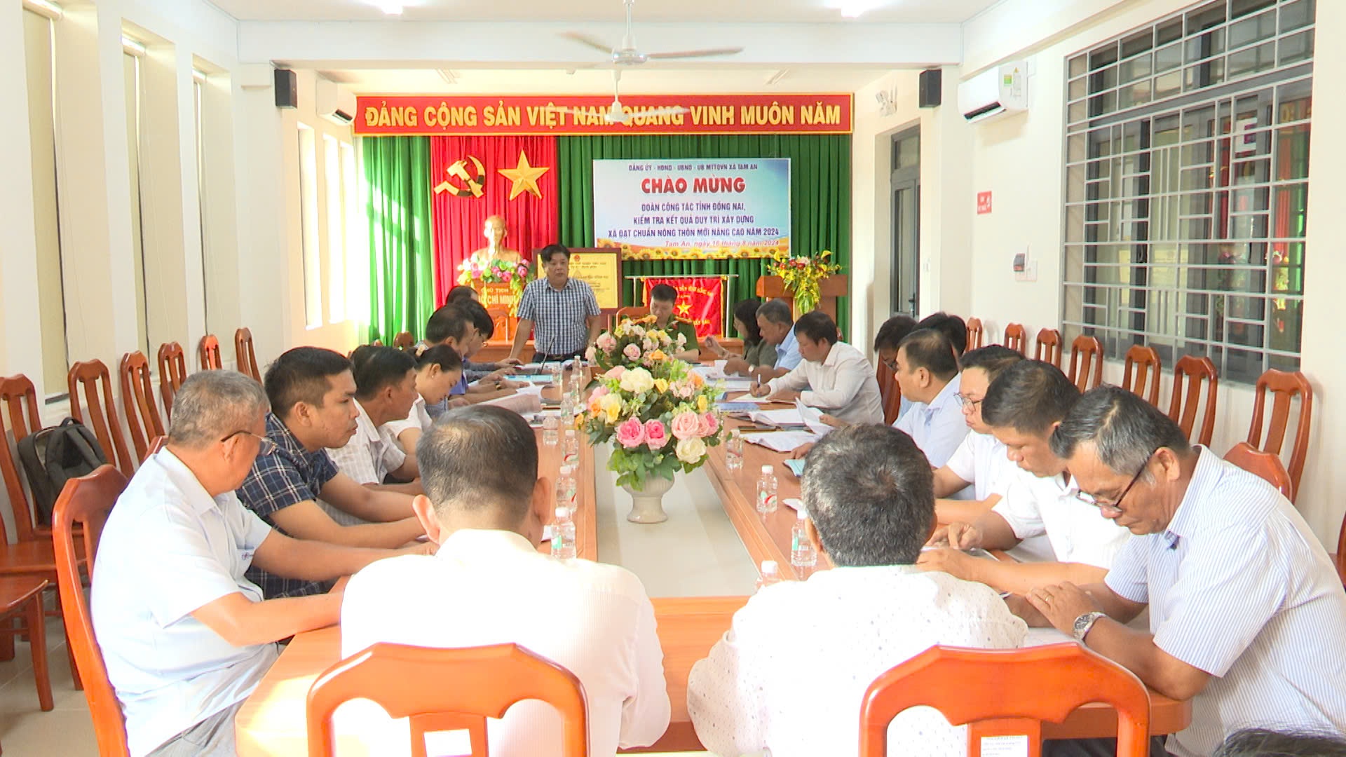 Sáng ngày 20/8/2024, Đoàn kiểm tra Huyện ủy Long Thành do đồng chí Tạ Minh Đức-UVTV- Chủ nhiệm Ủy ban kiểm tra Huyện ủy làm Trưởng đoàn đã có buổi làm việc với Đảng ủy xã Tam An về tình hình thực hiện Chỉ thị số 48-CT/TW ngày 22/10/2010 của Bộ Chính trị về tăng cường sự lãnh đạo của Đảng đối với công tác phòng chống tội phạm trong tình hình mới; Chỉ thị số 46-CT/TW ngày 22/6/2015 của Bộ Chính trị về tăng cường sự chỉ đạo của Đảng đối với công tác đảm bảo an ninh trật tự trong tình hình mới, Nghị quyết số 16-NQ/TU ngày 19/05/2020 của Ban Thường vụ Tỉnh ủy về tăng cường sự lãnh đạo của các Cấp ủy Đảng trong công tác đấu tranh phòng chống tội phạm ở giai đoạn (2020-2025) và Chỉ thị số 23-CT/TU ngày 18/7/2017 của Ban Thường vụ Tỉnh ủy về tăng cường sự lãnh đạo của Đảng đối với công tác tiếp nhận giải quyết tin báo, tố giác về tội phạm và kiến nghị khởi tố vụ án hình sự trên địa bàn tỉnh.