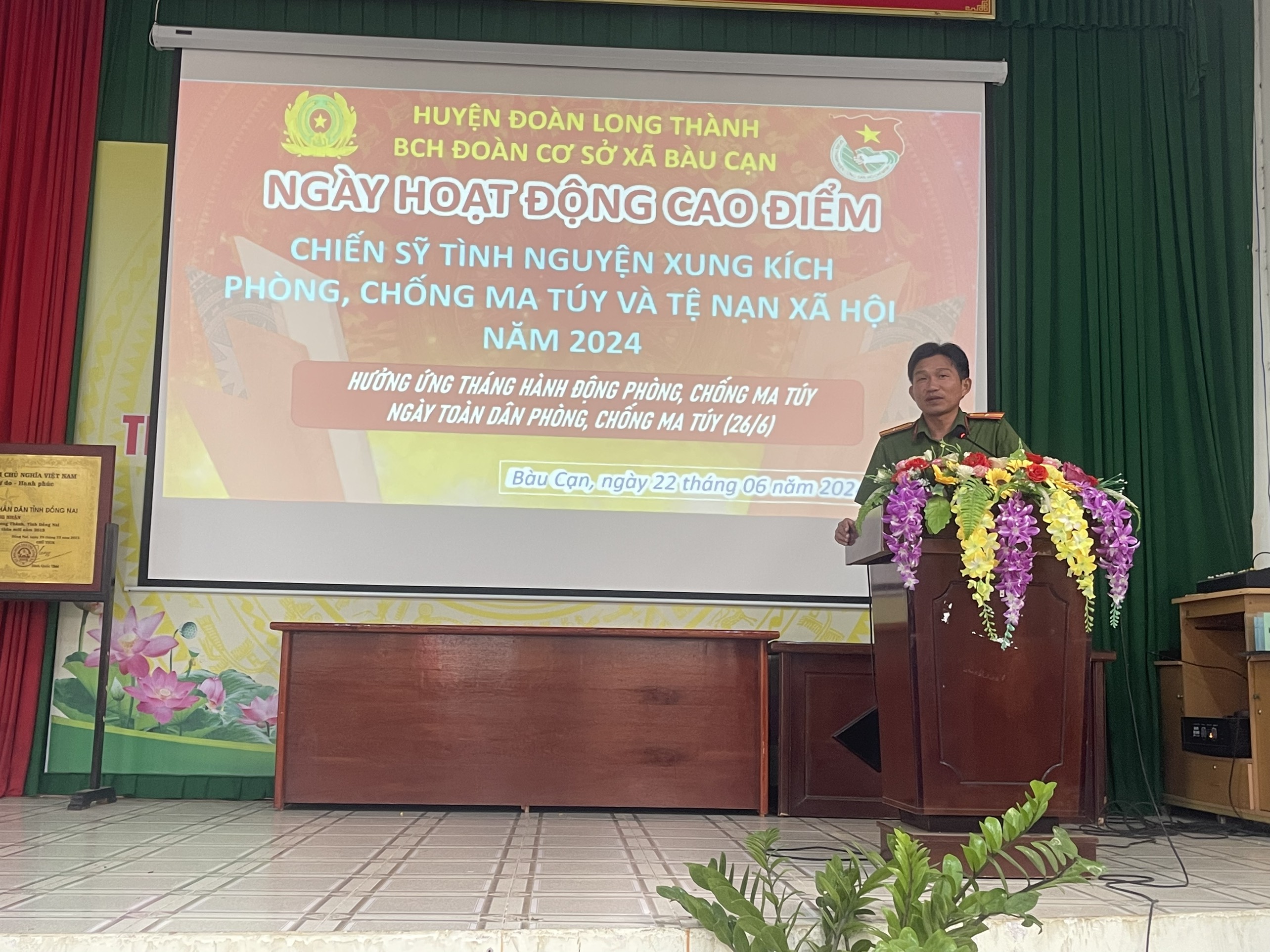Sáng Ngày 22/6/2024, Ban chấp hành Đoàn xã Bàu Cạn phối hợp với Ban chấp hành đoàn Công an huyện Long Thành tổ chức Hội nghị tuyên truyền về phòng chống ma túy, tác hại của ma túy và các tệ nạn xã hội cho 300 đoàn viên, thanh thiếu niên, học sinh trên địa bàn xã Bàu Cạn.