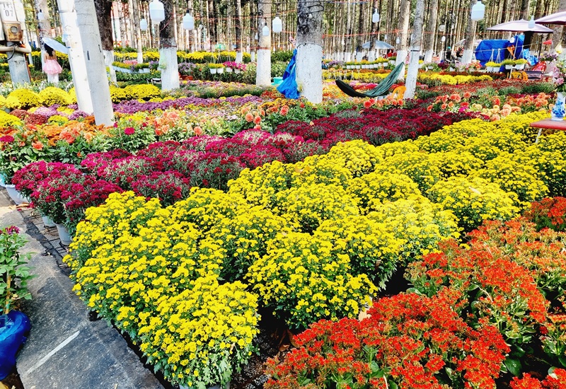 Còn tại chợ hoa Xuân tọa lạc trong khu Trung tâm hành chính huyện, gần 300 hộ dân kinh doanh hoa được bố trí dọc theo 2 bên các trục đường và công viên 28/04, với đa dạng loại hoa và giá cả hợp lý, đảm bảo tính thẩm mỹ, vệ sinh và an toàn giao thông. Bên cạnh tạo nơi kinh doanh tập trung, đáp ứng nhu cầu mua hoa trang trí nhà cửa … chợ hoa còn là nơi để hàng ngàn lượt người dân tìm đến tham quan, vui chơi, mua sắm thể hiện nét đẹp văn hóa đặc trưng của dân tộc mỗi dịp Tết đến, Xuân về, mang lại nhiều cảm xúc.