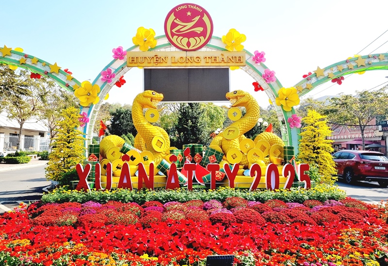 Tết Nguyên đán Ất Tỵ năm 2025 đang đến gần, tại khu Trung tâm hành chính huyện Long Thành, với việc UBND huyện thực hiện con đường hoa và chợ hoa Xuân, kết hợp cảnh quan các tuyến đường được lắp đèn trang trí, cờ Tổ quốc, logo … đã tăng thêm vẻ đẹp lộng lẫy, thu hút đông đảo các tầng lớp nhân dân đến tham quan, chụp ảnh, cùng bao kỳ vọng về một năm mới tốt đẹp hơn.