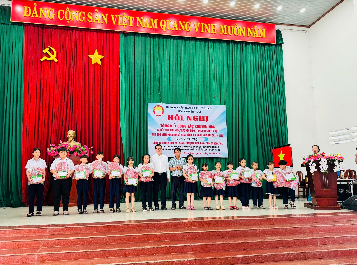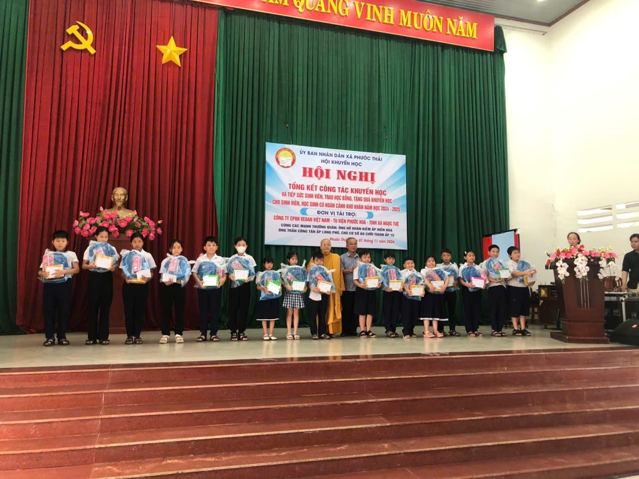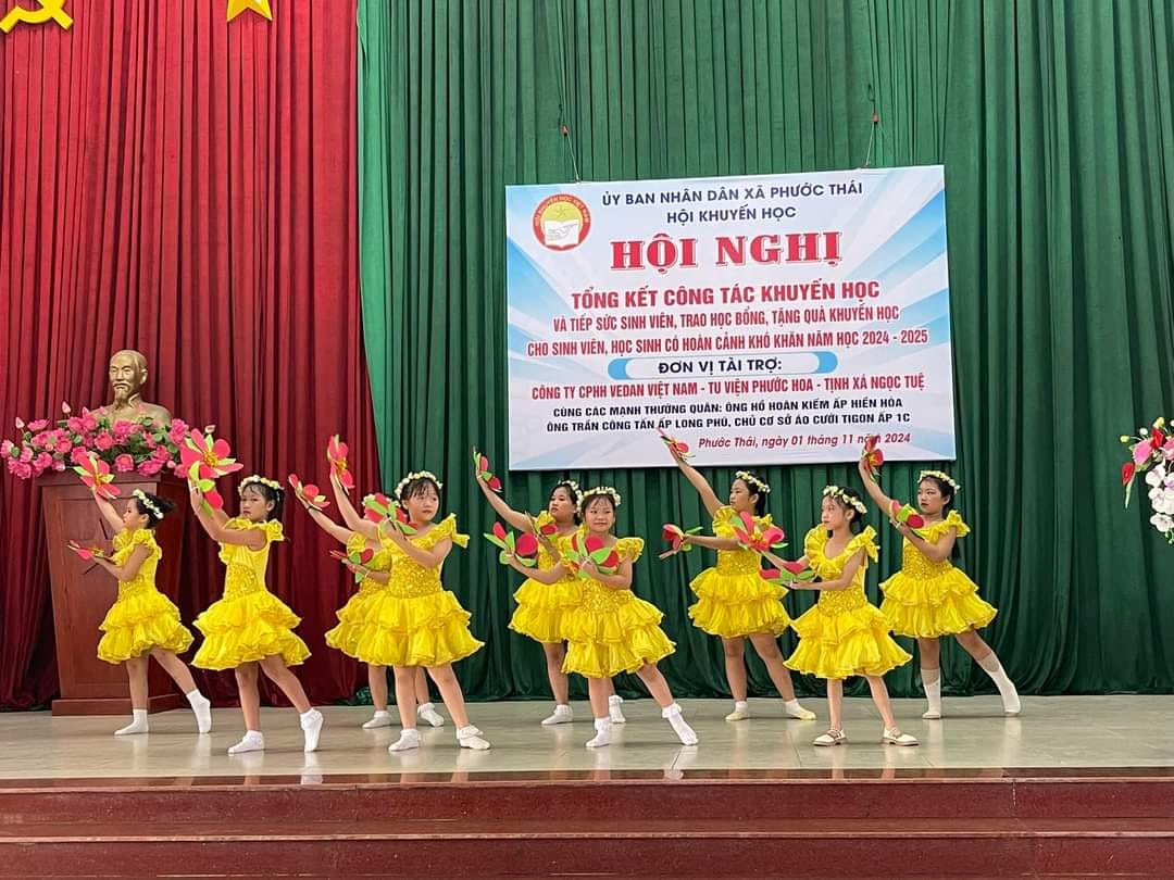Sau khi các đại biểu được thưởng thức một số tiết mục văn nghệ của các em học sinh thể hiện, ông Trần Đình Lành - Phó chủ tịch Hội khuyến học xã đã báo cáo kết quả công tác khuyến học, khuyến tài, xây dựng xã hội học tập năm 2024, đánh giá kết quả đạt được, những khó khăn còn tồn tại và đề ra phương hướng nhiệm vụ công tác Hội trong thời gian tới.Từ đó cho ta thấy, khuyến học là truyền thống tốt đẹp lâu đời của dân tộc, là chính sách quốc gia của nhân dân Việt Nam. Từ xa xưa ông cha ta đã dạy “ Nhân bất học, bất tri lý” – “Người không học, không hiểu biết”. Nhận rõ lợi ích và sự cần thiết của việc học : Học để biết, Học để làm người, Học để lập thân, lập nghiệp, xây dựng và bảo vệ quê hương đất nước, từ lâu ông cha ta đã khuyến khích và có nhiều hình thức giúp đỡ, động viên con cháu trong dòng họ chăm chỉ học hành. Phát huy truyền thống tốt đẹp đó, trong nhiều năm qua Đảng bộ, chính quyền và nhân dân xã Phước thái đã luôn quan tâm, đầu tư, xây dựng cơ sở vật chất cho các nhà trường ngày một khang trang, hiện đại. Bước đầu đã đáp ứng được mục tiêu dạy và học chương trình giáo dục phổ thông mới, góp phần xây dựng nông thôn kiểu mẫu, khu đô thị văn minh. Đồng thời, công tác xây dựng Quỹ khuyến học luôn được các ban nghành, đoàn thể, các trường học và doanh nghiệp trên địa bàn xã huy động tối đa các nguồn lực hỗ trợ cho các hoạt động giáo dục của từng cấp học để làm tốt công tác khuyến học, khuyến tài, từng bước phát triển mô hình xã hội học tập và học tập suốt đời, góp phần nâng cao dân trí, bồi dưỡng nhân tài cho địa phương và cho đất nước. Cũng nhân dịp này, Hội khuyến học xã đã vận động trao 10 suất học bổng cho sinh viên, 77 suất học bổng kèm cặp sách và quà cho học sinh hộ nghèo, cận nghèo và có hoàn cảnh khó khăn vươn lên trong học tập với tổng giá trị trên 133 triệu đồng nhằm khích lệ, hỗ trợ, tiếp sức các em vươn lên trong học tập và rèn luyện nhân cách để trở thành những công dân có ích cho xã hội trong tương lai.