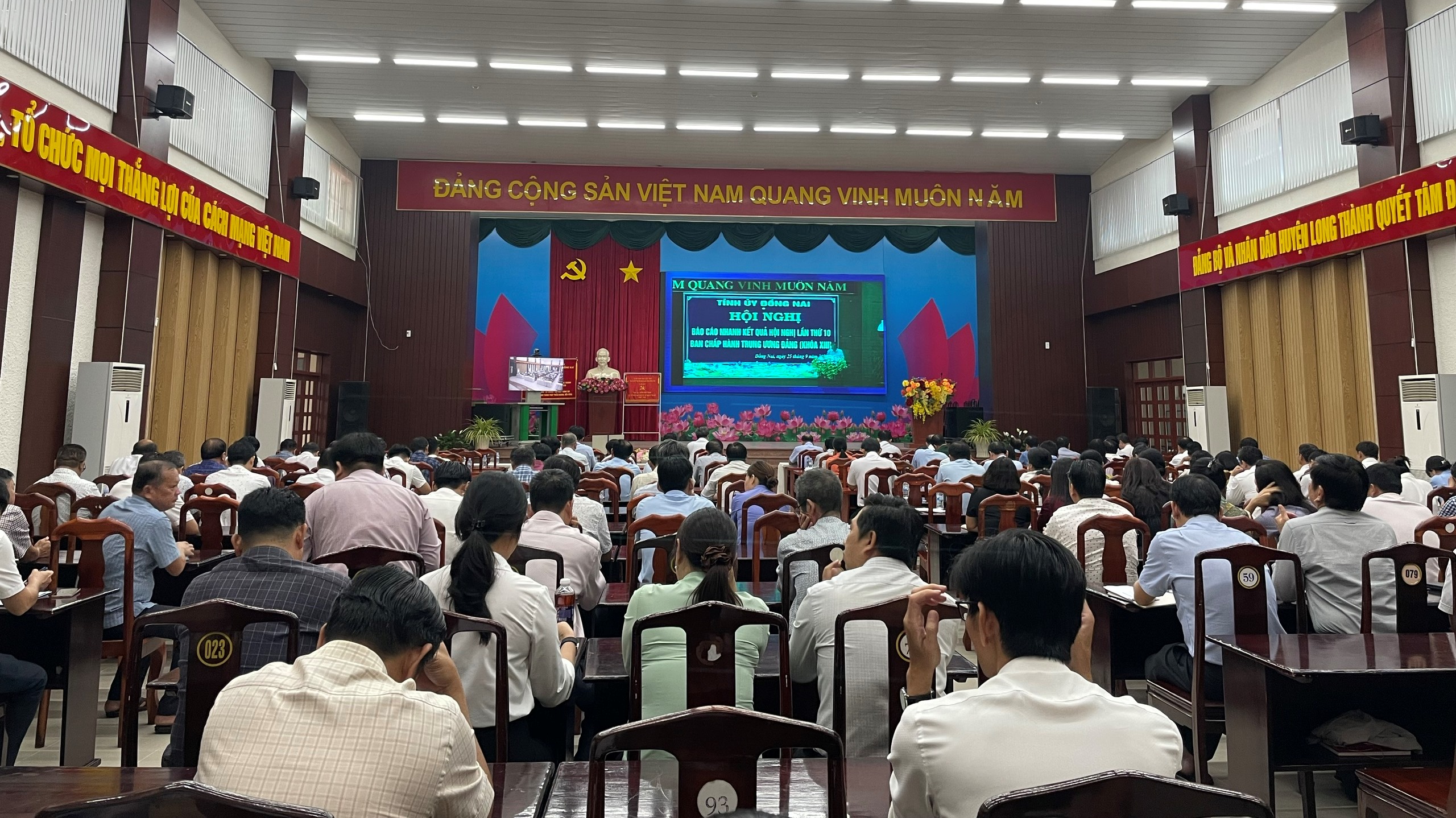 Chiều ngày 25/9, Tỉnh ủy Đồng Nai tổ chức Hội nghị trực tuyến thông báo nhanh kết quả Hội nghị lần thứ 10 Ban Chấp hành Trung ương Đảng (khóa XIII). Đồng chí Nguyễn Hồng Lĩnh – Ủy viên Trung ương Đảng, Bí thư Tỉnh ủy chủ trì hội nghị. Dự và chủ trì tại điểm cầu huyện Long Thành có đồng chí Dương Minh Dũng – UVBTV Tỉnh ủy, Bí thư Huyện ủy; đồng chí Huỳnh Minh Dũng - Phó Bí thư Thường trực Huyện ủy, Chủ tịch HĐND huyện cùng các đồng chí là cán bộ chủ chốt của huyện.
