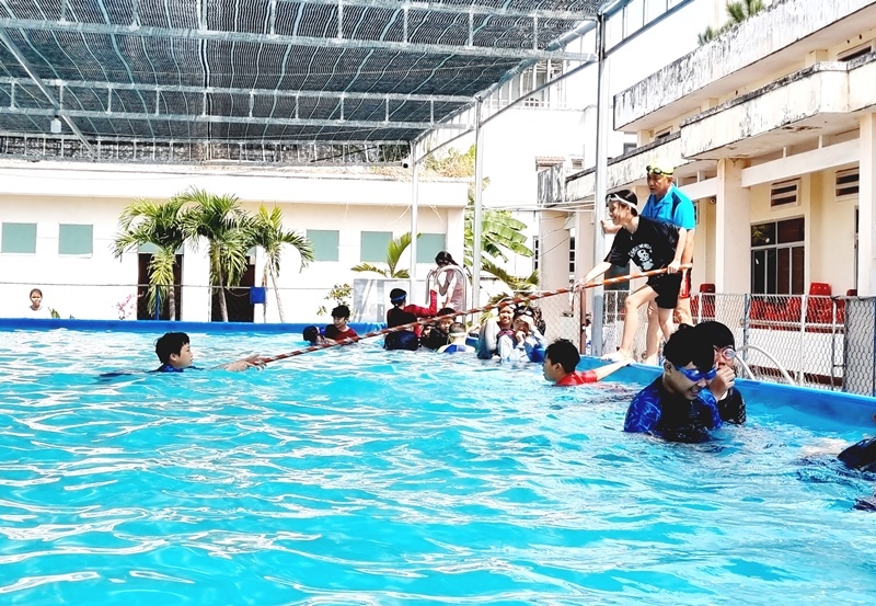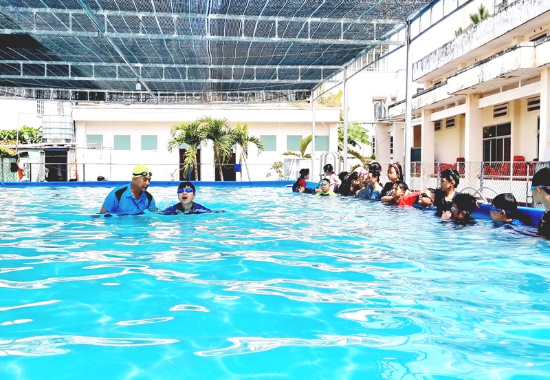 Học sinh Trường THCS thị trấn Long Thành trong giờ học bơi