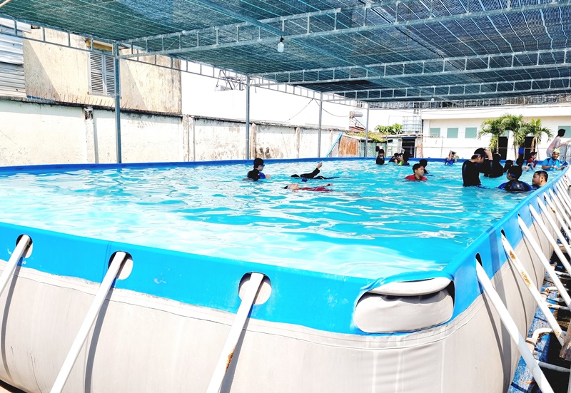 Hồ bơi nổi lắp ghép ở Trường THCS thị trấn Long Thành