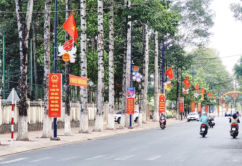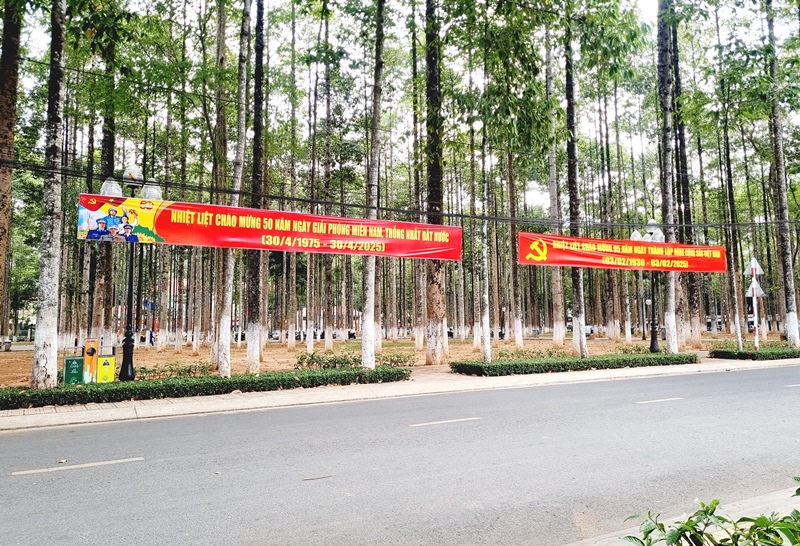 Pano tuyên truyền lễ 30/04 và 01/05 tại các trục đường trong Khu hành chính huyện