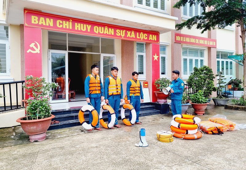 Ban Chỉ huy quân sự xã Lộc An huẩn luyện Dân quân tự vệ thực hiện cứu hộ, cứu nạn