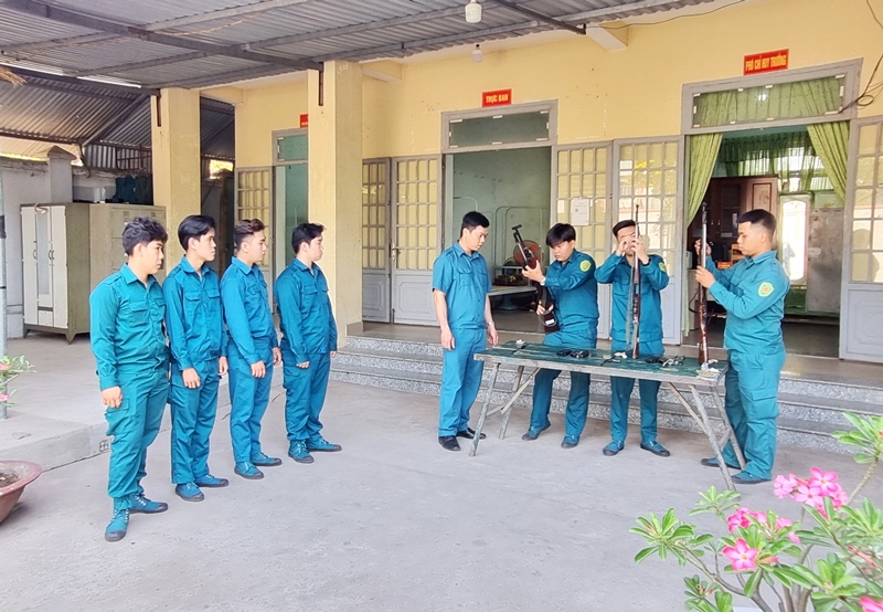 Ban Chỉ huy quân sự xã Tam An huẩn luyện Dân quân tự vệ thực hiện bảo quản vũ khí trang bị
