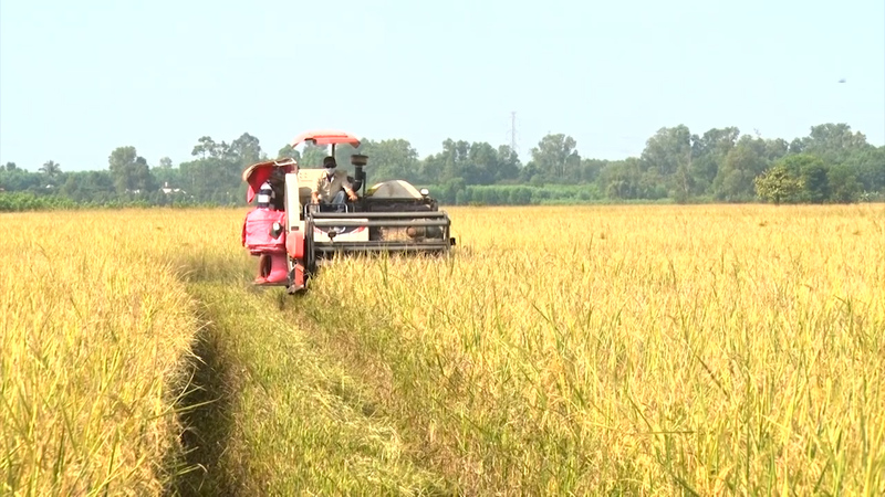Thu hoạch lúa tại xã Long Phước