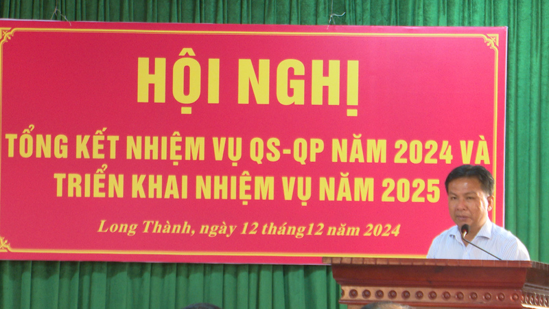 Sáng 12/12, Ban chỉ huy quân sự huyện Long Thành đã tổ chức hội nghị tổng kết công tác quân sự quốc phòng năm 2024 và triển khai nhiệm vụ năm 2025. Đại tá Phan Quốc Việt – UVTV Tỉnh ủy, Chỉ huy trưởng BCH Quân sự tỉnh Đồng Nai dự và chỉ đaok hội nghị.