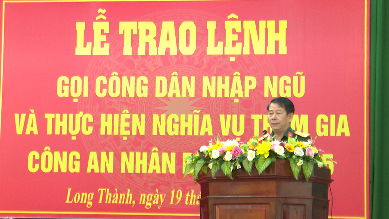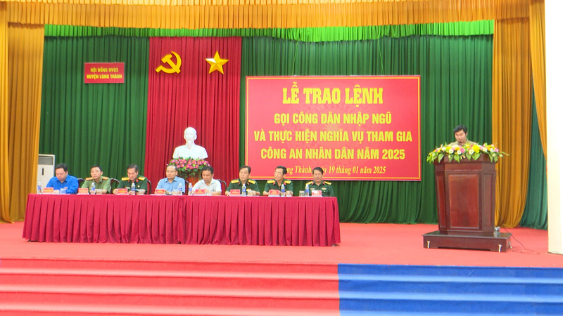 Tại buổi lễ, huyện Long Thành đã trao lệnh gọi nhập ngũ cho 312 thanh niên thực hiện nghĩa vụ quân sự tham gia công an nhân dân năm 2025. Trong đó, 256 thanh niên thực hiện nghĩa vụ quân sự tại các đơn vị gồm: Trường Sỹ quan Kỹ thuật Quân sự - Tổng cục Kỹ thuật, Trường Trung cấp Kỹ thuật Tăng thiết giáp – Phân hiệu Miền nam, Tiểu đoàn Vệ binh 180 (Bộ Tham mưu Quân khu 7), Lữ đoàn Đặc công nước 5, Bộ Chỉ huy quân sự tỉnh Đồng Nai và 40 thanh niên tham gia nghĩa vụ công an nhân dân tại Công an tỉnh Đồng Nai.