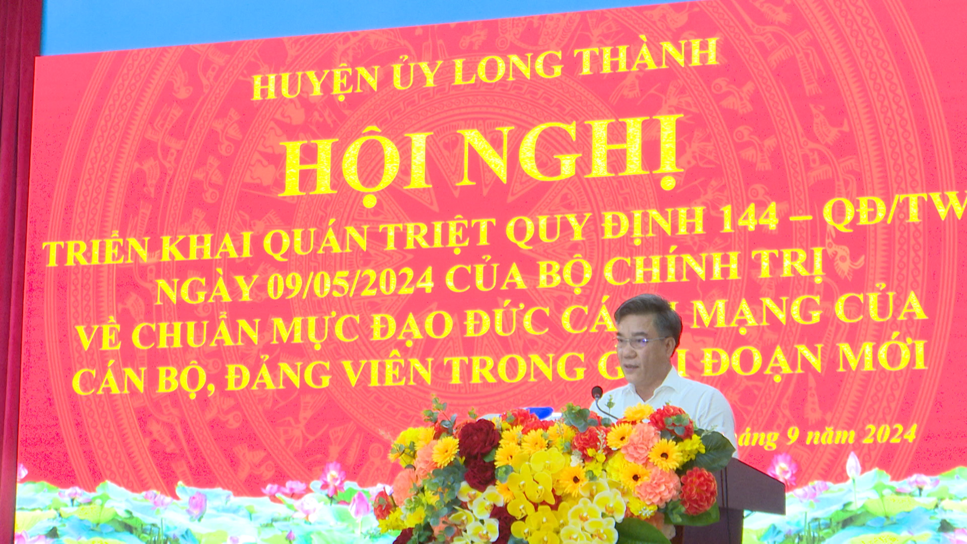 Sáng 10/9, Huyện ủy Long Thành tổ chức Hội nghị quán triệt Quy định số 144, ngày 09/5/2024 của Bộ Chính trị về chuẩn mực đạo đức cách mạng của cán bộ, Đảng viên trong giai đoạn mới cho cán bộ chủ chốt, đội ngũ báo cáo viên, tuyên truyền viên ở cơ sở.