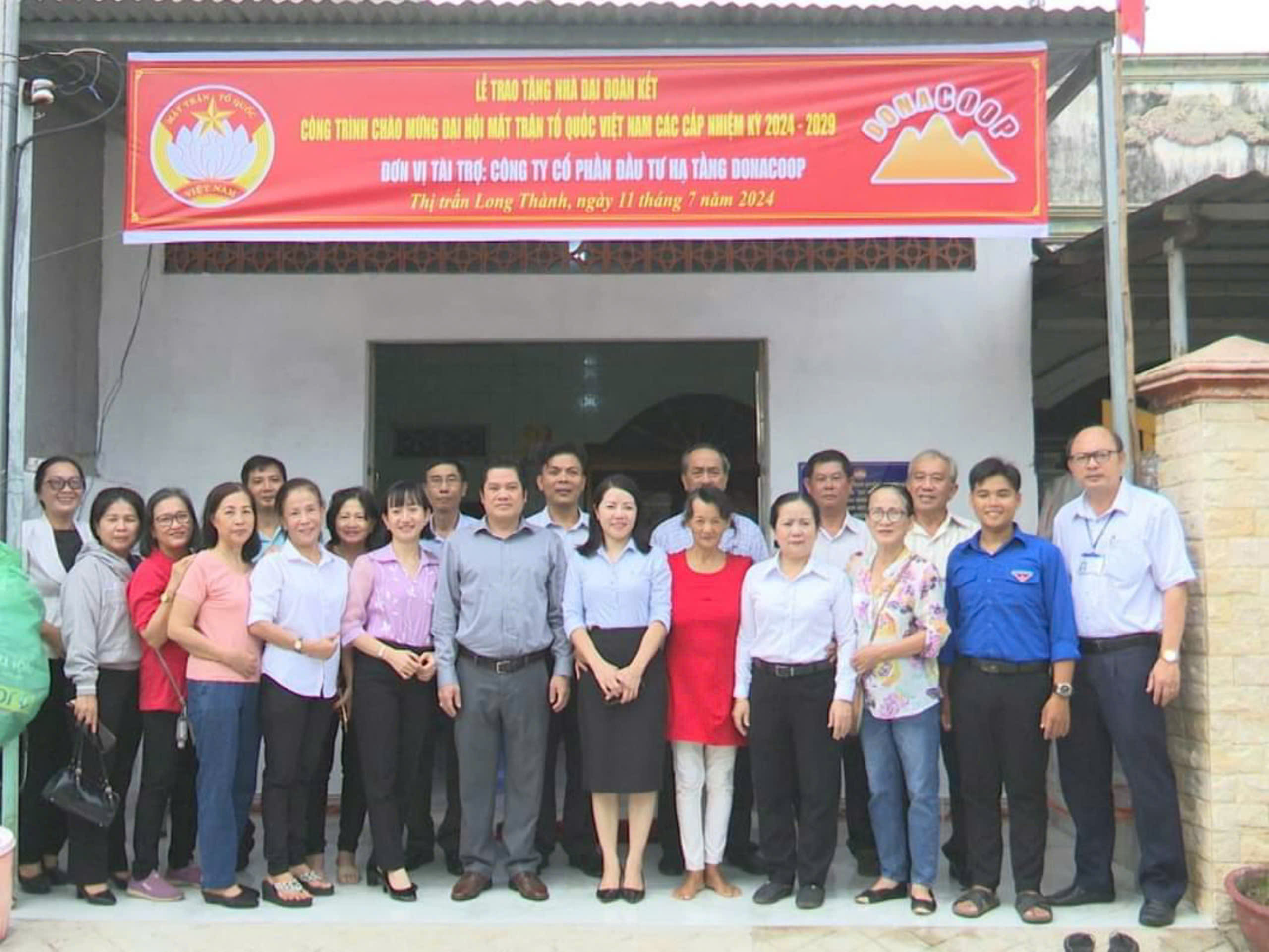 Đến nay, tổng quỹ người nghèo huyện là 28.555.305.000 đồng. Trong đó: triển khai xây mới 12 căn, sửa chữa 09 căn nhà đại đoàn kết cho hộ nghèo, hộ có hoàn cảnh khó khăn; hỗ trợ thêm kinh phí xây nhà cho 13 hộ khó khăn tại xã Bình Sơn được cấp đất tái định cư thuộc dự án Cảng hàng không quốc tế Long Thành, tổng kinh phí thực hiện hỗ trợ xây mới và sửa chữa nhà đại đoàn kết 1.936.000.000 đồng; phối hợp tổ chức vận động tặng quà tết nhân dịp lễ tết và thực hiện công tác an sinh xã hội cho 54.063 lượt người là hộ nghèo, hộ cận nghèo, hộ có hoàn cảnh khó khăn, người khuyết tật, nạn nhân chất độc da cam, công nhân lao động khó khăn… tổng trị giá 26.849.460.000 đồng. (Riêng các tổ chức thành viên huyện vận động chăm lo cho hội viên, đoàn viên thuộc tổ chức mình, giúp cho người nghèo, hộ nghèo, công nhân lao động khó khăn được 23.928 suất, tổng trị giá 9.774.000.000 đồng). Hưởng ứng lời gọi của Ủy ban MTTQ Việt Nam tỉnh về việc vận động ủng hộ Nhân dân khắc phục hậu quả do thiên tai, Ủy ban MTTQ Việt Nam huyện đã tổ chức vận động được số tiền 3.065.182.574 đồng, đã chuyển toàn bộ kinh phí vận động về Ủy ban MTTQ Việt Nam tỉnh và vận động 04 chuyến xe 0 đồng hỗ trợ vận chuyển hàng hóa đi cứu trợ các tỉnh bị ảnh hưởng bão lũ tổng kinh phí hơn 200 triệu đồng; phối hợp Hội Chữ Thập đỏ huyện vận động ủng hộ trên 60 tấn hàng hóa cứu trợ đồng bào các tỉnh phía bắc bị ảnh hưởng do thiên tai.