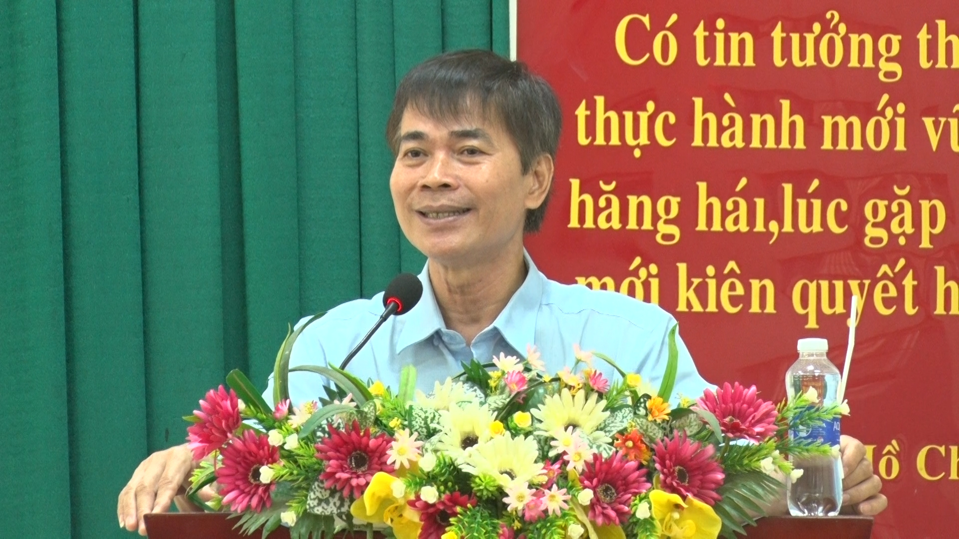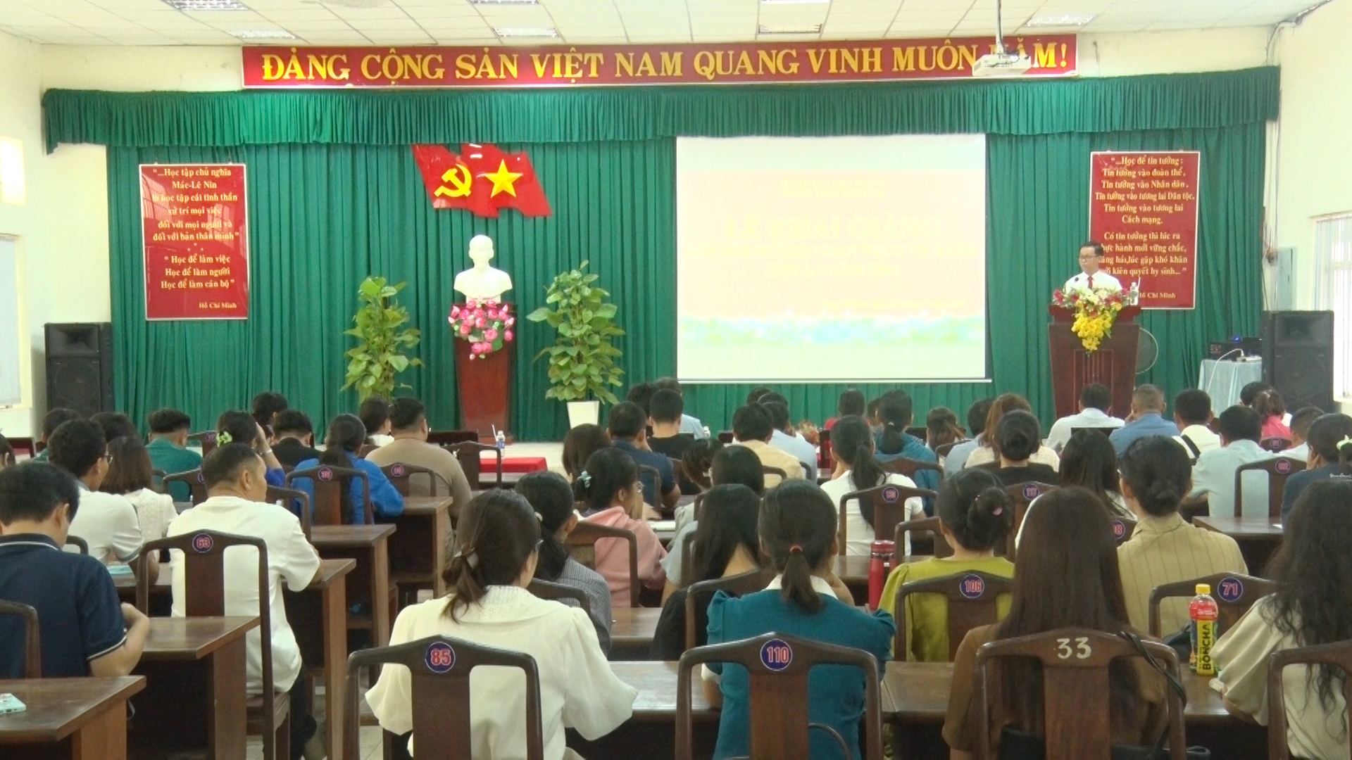 Đ/c Nguyễn Quốc Thảo - UVTV - Trưởng Ban Tuyên giáo Huyện Ủy, Giám đốc Trung tâm Chính trị huyện phát biểu khai giảng lớp học
