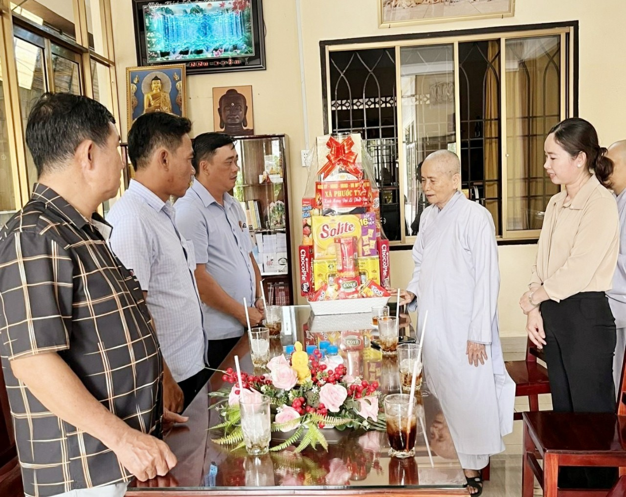 Đoàn do Đ/c Huỳnh Minh Thảo – HUV. Bí thư Đảng uỷ xã (Trưởng đoàn) đến thăm tặng quà đại Lễ Phật đản