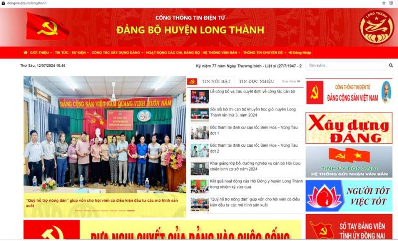 Giao diện Cổng thông tin điện tử Đảng bộ huyện Long Thành chính thức đi vào hoạt động