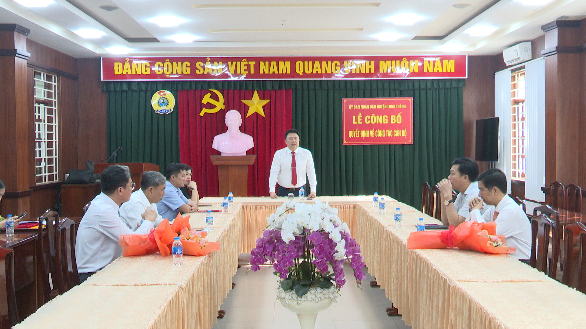 Phát biểu tại buổi lễ, Đ/c Trần Văn Thân-HUV- Phó chủ tịch UBND huyện mong muốn trên cương vị mới, các đồng chí được nhận nhiệm vụ cần tiếp tục phát huy trình độ, năng lực và tinh thần đoàn kết, trách nhiệm cao cùng với tập thể lãnh đạo huyện Long Thành hoàn thành xuất sắc nhiệm vụ được giao, góp phần vào phát triển kinh tế - xã hội huyện nhà.