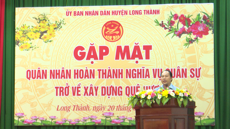 Tại đây, lãnh đạo huyện đã biểu dương những đóng góp của các quân nhân trong thời gian tại ngũ và tin tưởng rằng, sau khi trở, các quân nhân sẽ tiếp tục phát huy những phẩm chất tốt đẹp của người lính, tích cực tham gia các phong trào thi đua yêu nước, góp phần xây dựng quê hương Long Thành ngày càng giàu đẹp