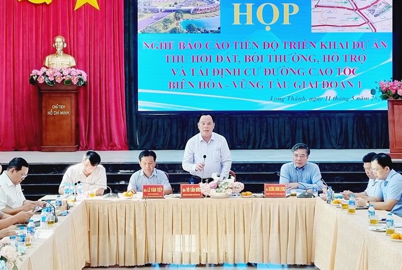 Sáng ngày 11-05, tại hội trường UBND huyện Long Thành, Quyền Chủ tịch UBND tỉnh Võ Tấn Đức đã có buổi làm việc với các đơn vị liên quan, để nghe báo cáo tiến độ công tác bồi thường, giải phóng mặt bằng dự án Đường bộ cao tốc Biên Hòa - Vũng Tàu. Cùng dự còn có đồng chí Dương Minh Dũng-Ủy viên Ban TVTU, Bí thư Huyện ủy Long Thành.